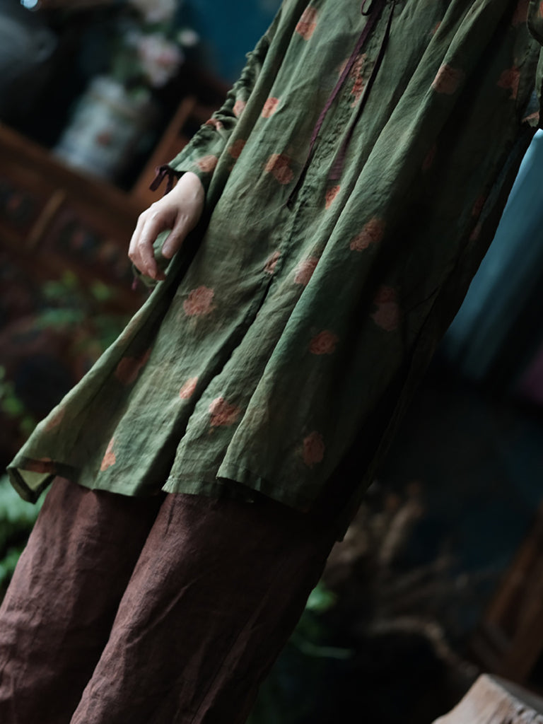 Damska letnia koszula retro z okrągłym dekoltem i ramią w kwiaty