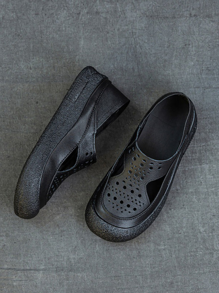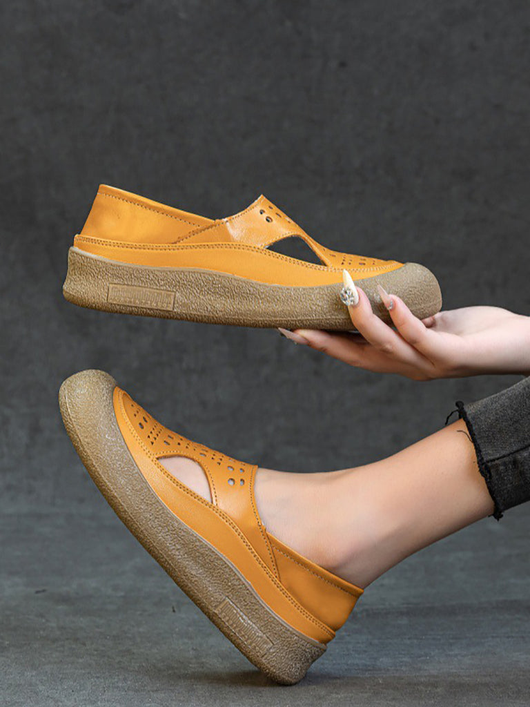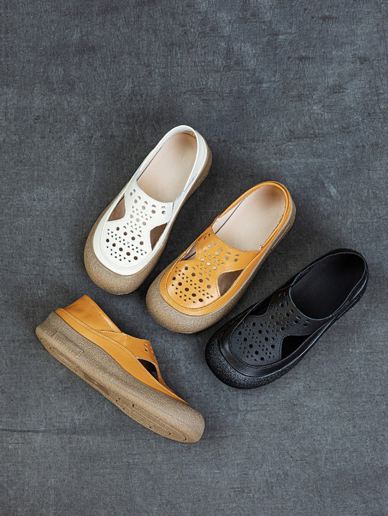 Damskie letnie, swobodne, skórzane, płaskie buty z wycięciami