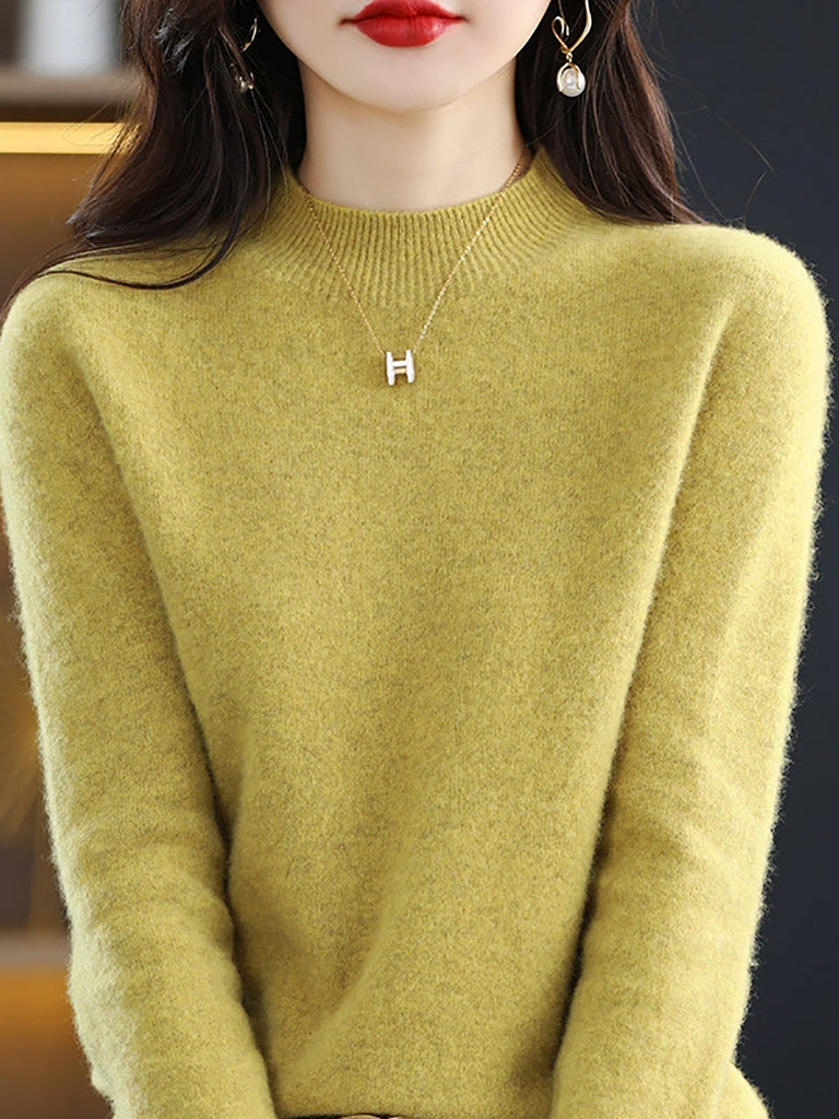 Damski jesienny, swobodny, dzianinowy, wełniany sweter z półgolfem