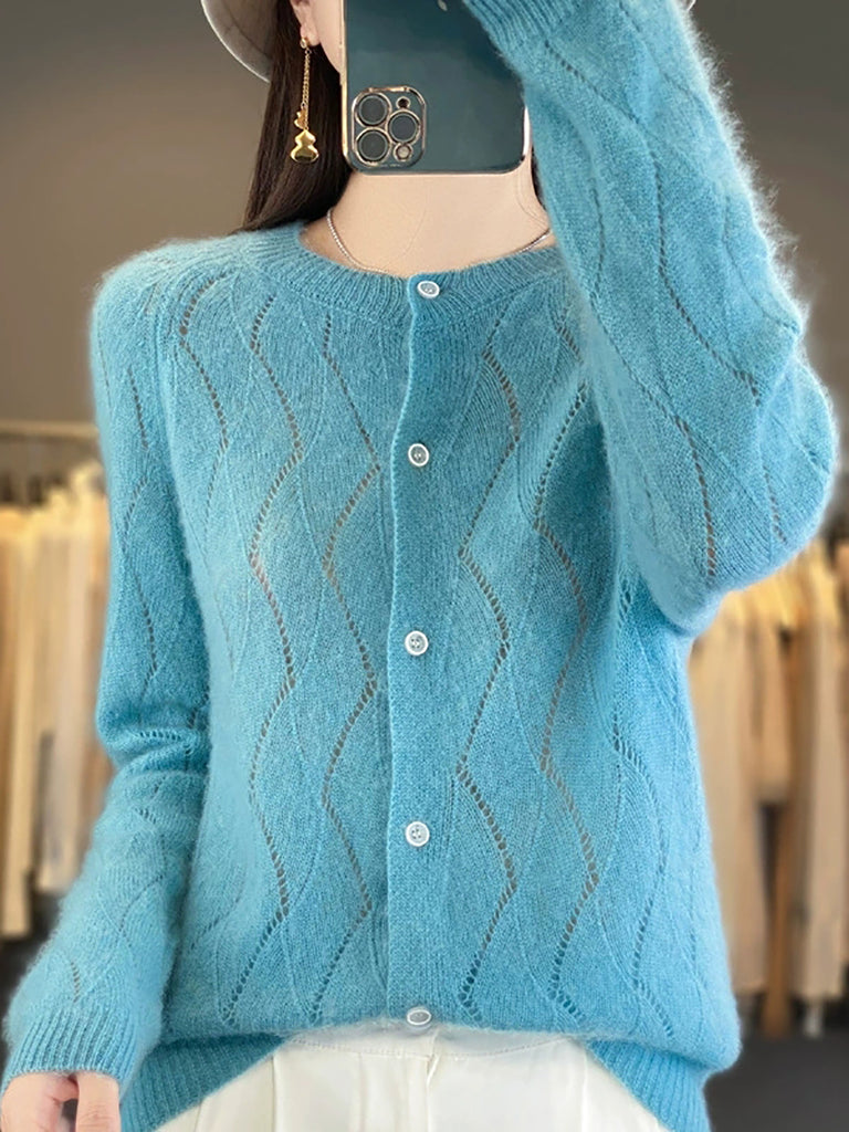 Damski jesienny, swobodny kardigan z okrągłym dekoltem