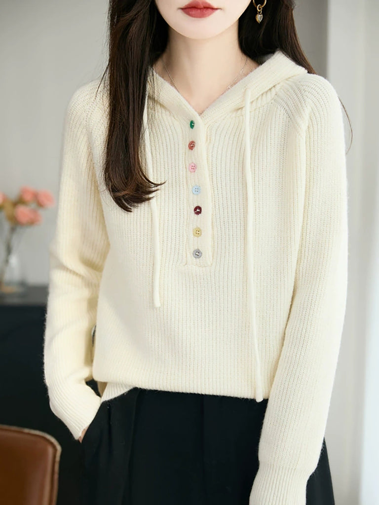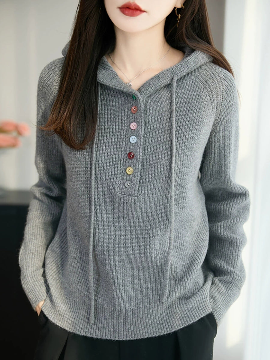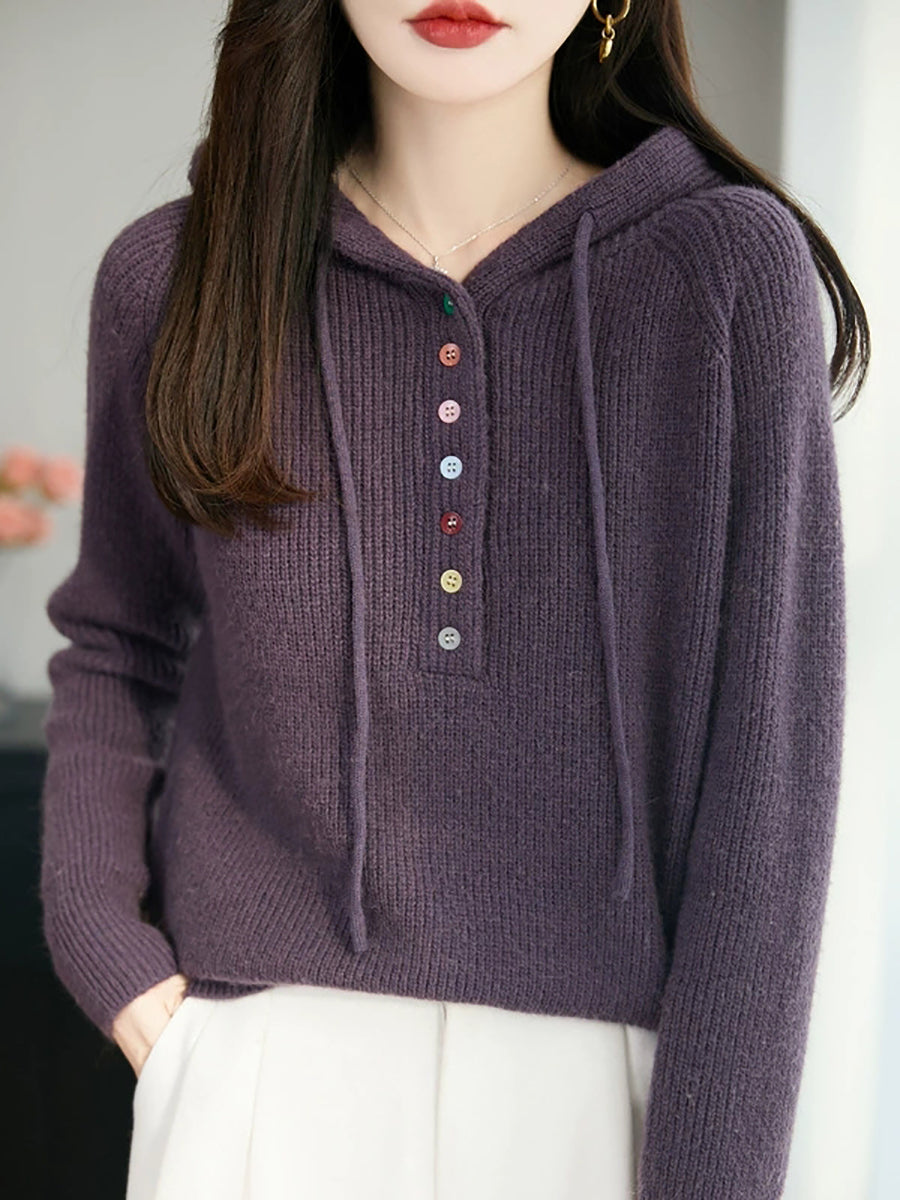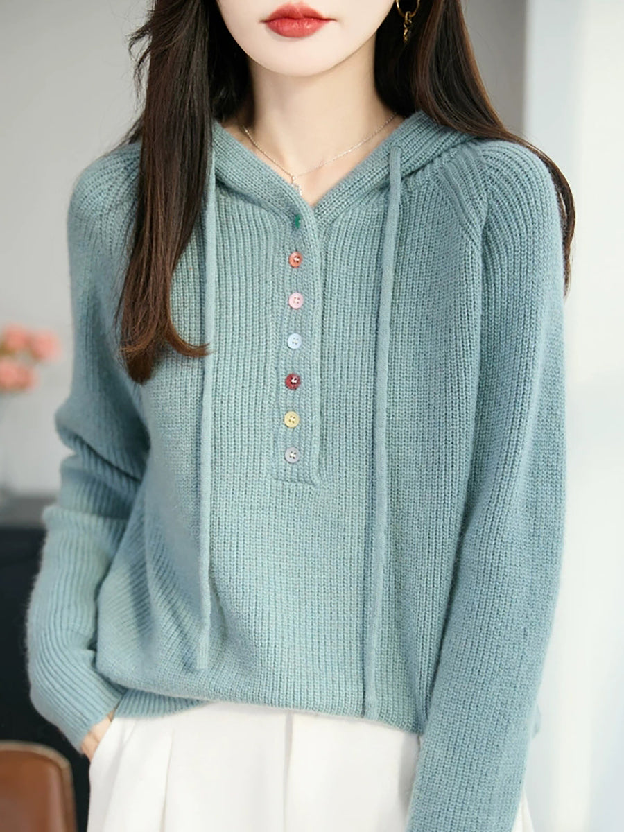 Damski jesienny, swobodny, jednokolorowy sweter z kapturem