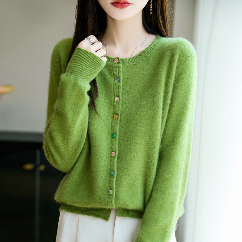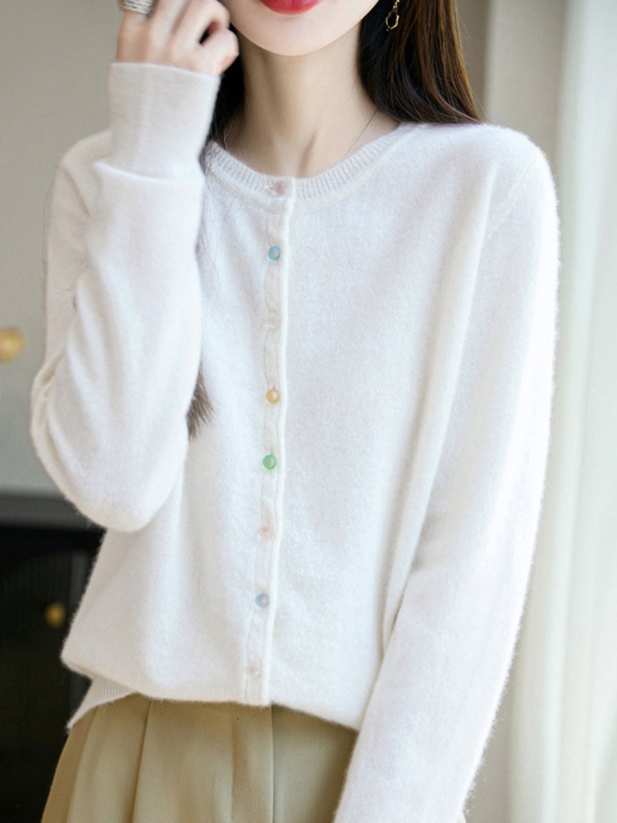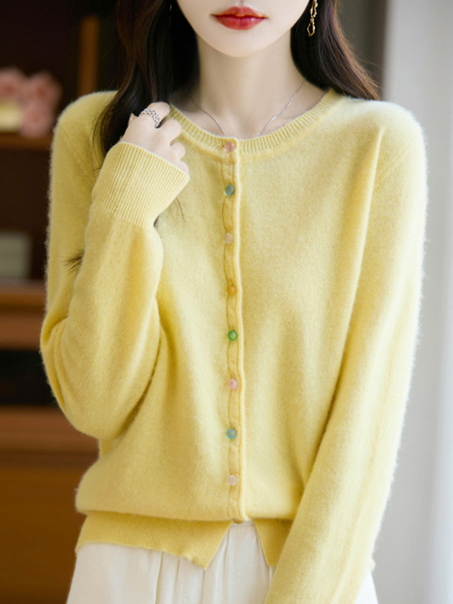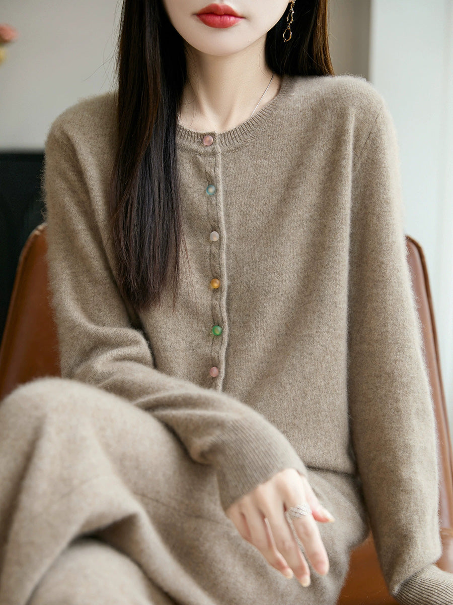 Damski jesienny, swobodny, wełniany sweter z okrągłym dekoltem w jednolitym kolorze