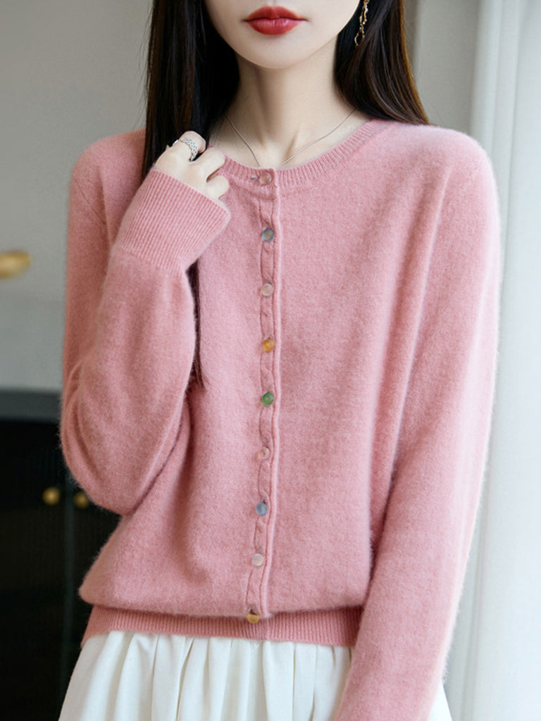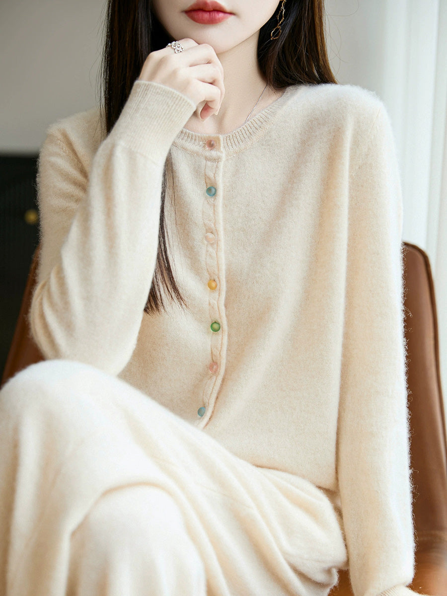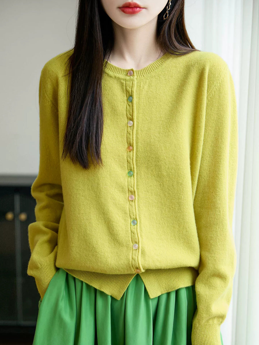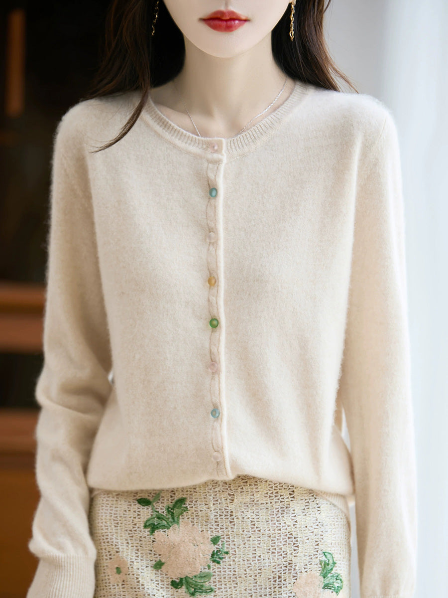 Damski jesienny, swobodny, wełniany sweter z okrągłym dekoltem w jednolitym kolorze