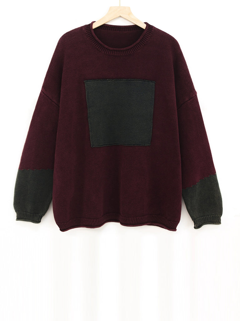 Damski jesienny sweter retro z okrągłym dekoltem, 100% bawełny, z łączonymi splotami