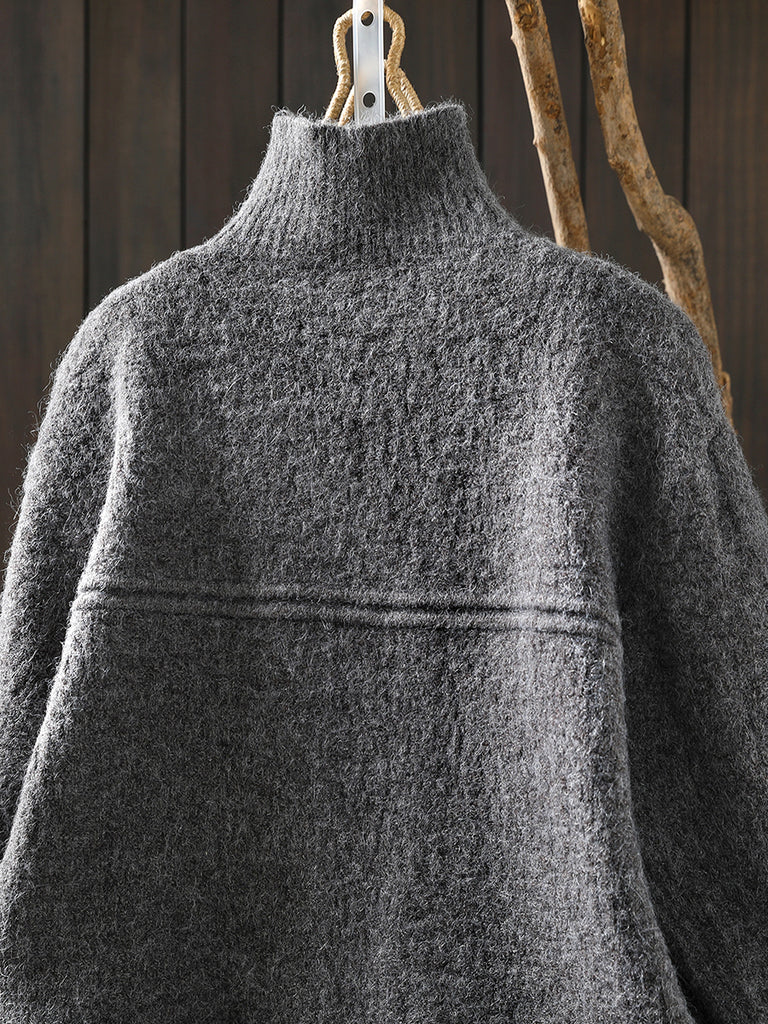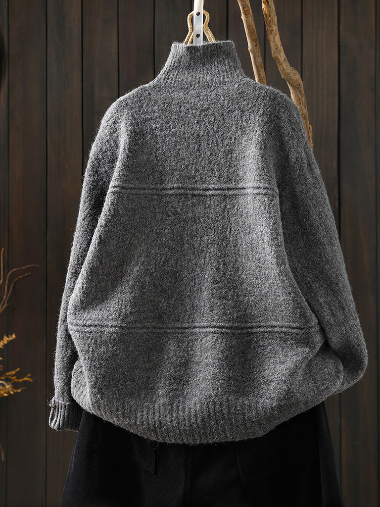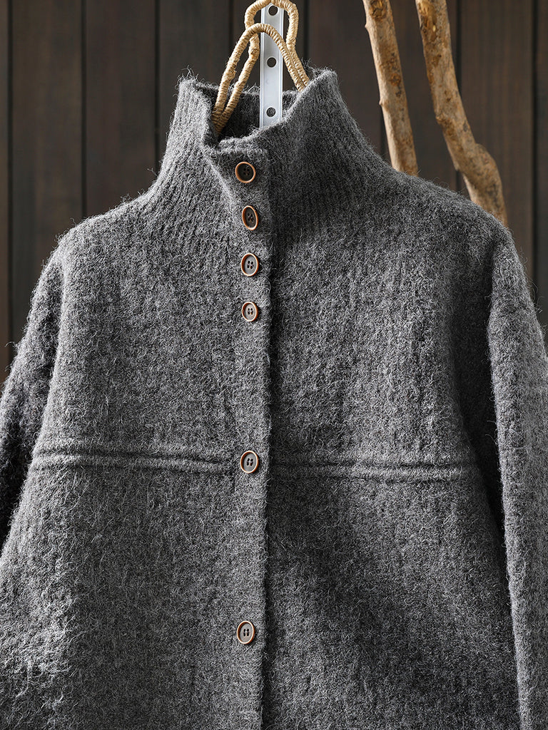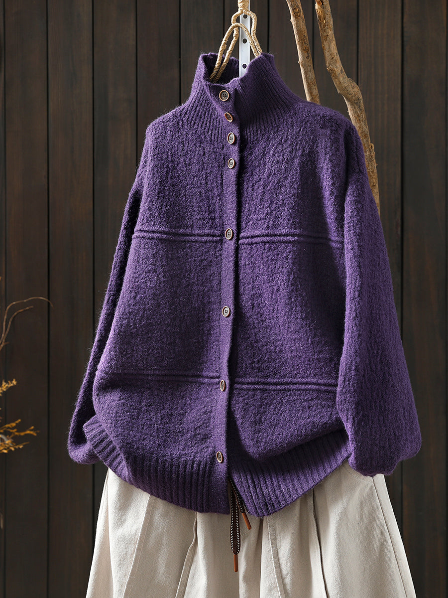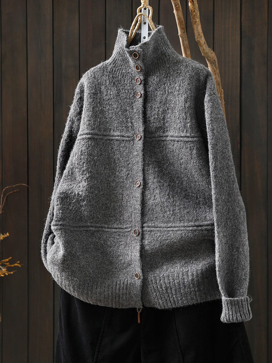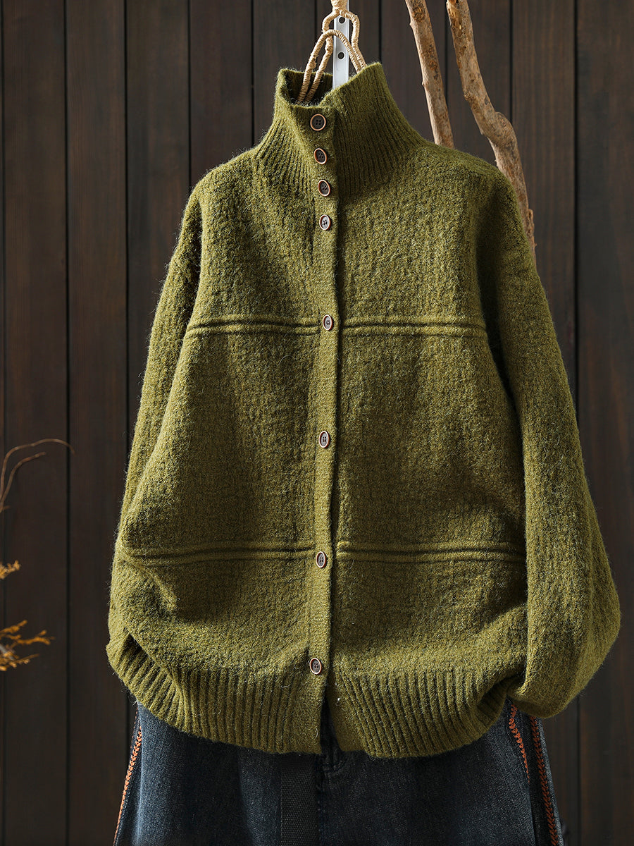 Damski jesienny sweter kardigan z golfem w jednolitym kolorze