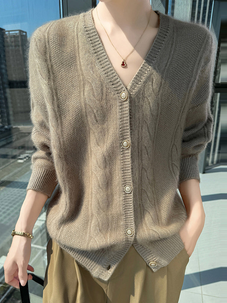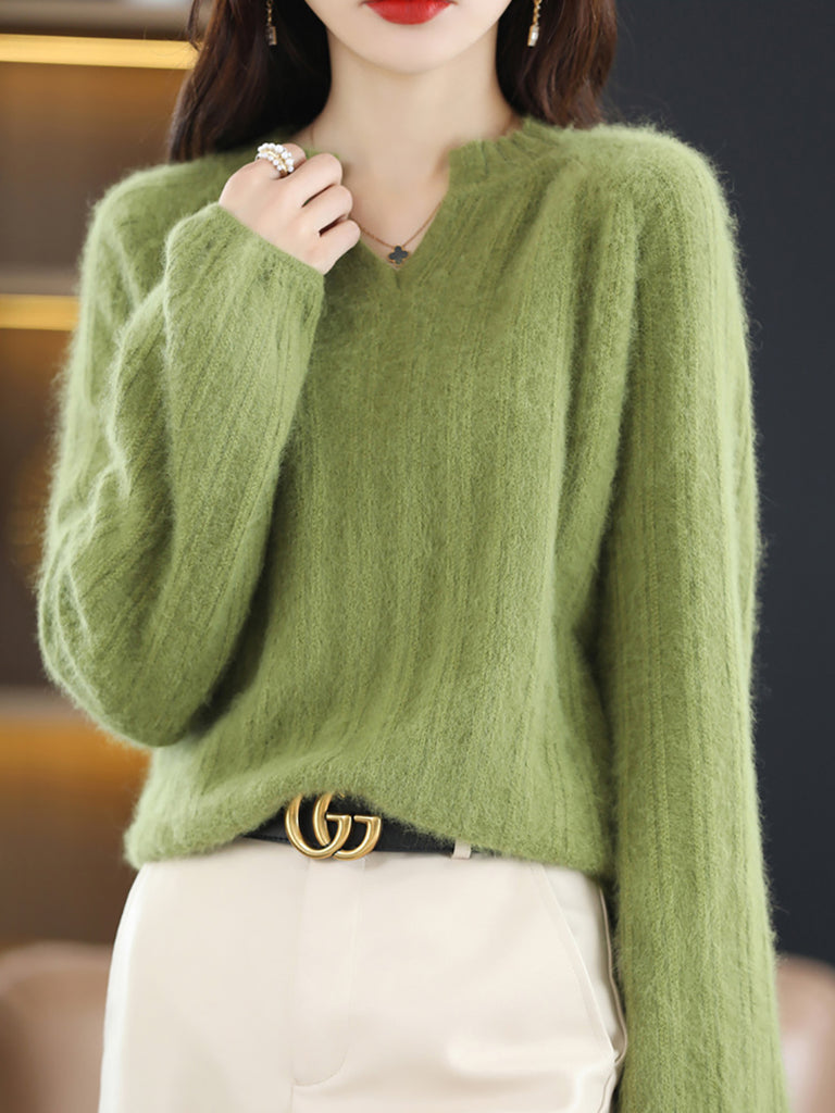 Damski zimowy sweter w jednolitym kolorze z dekoltem w serek