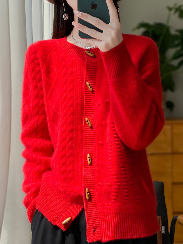 Damski zimowy sweter z czystej wełny z okrągłym dekoltem