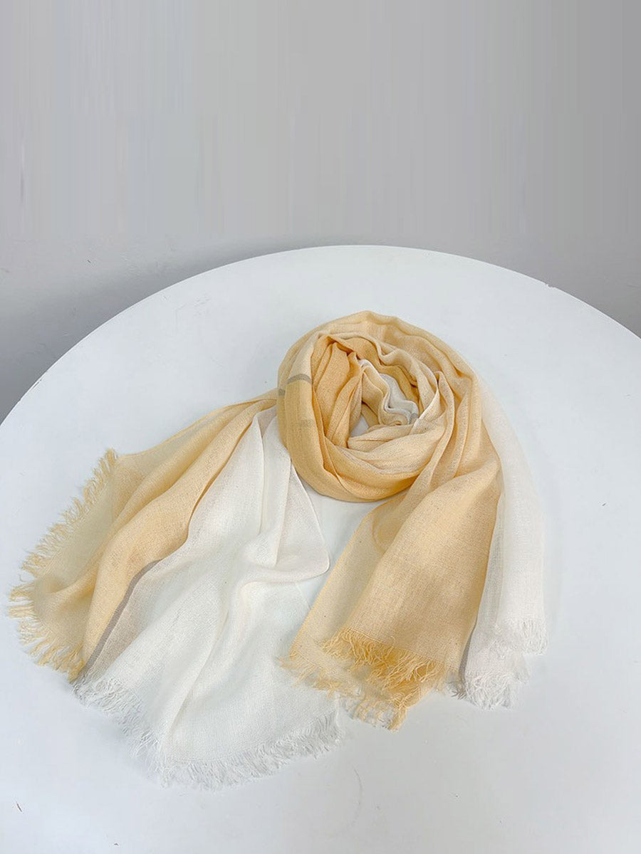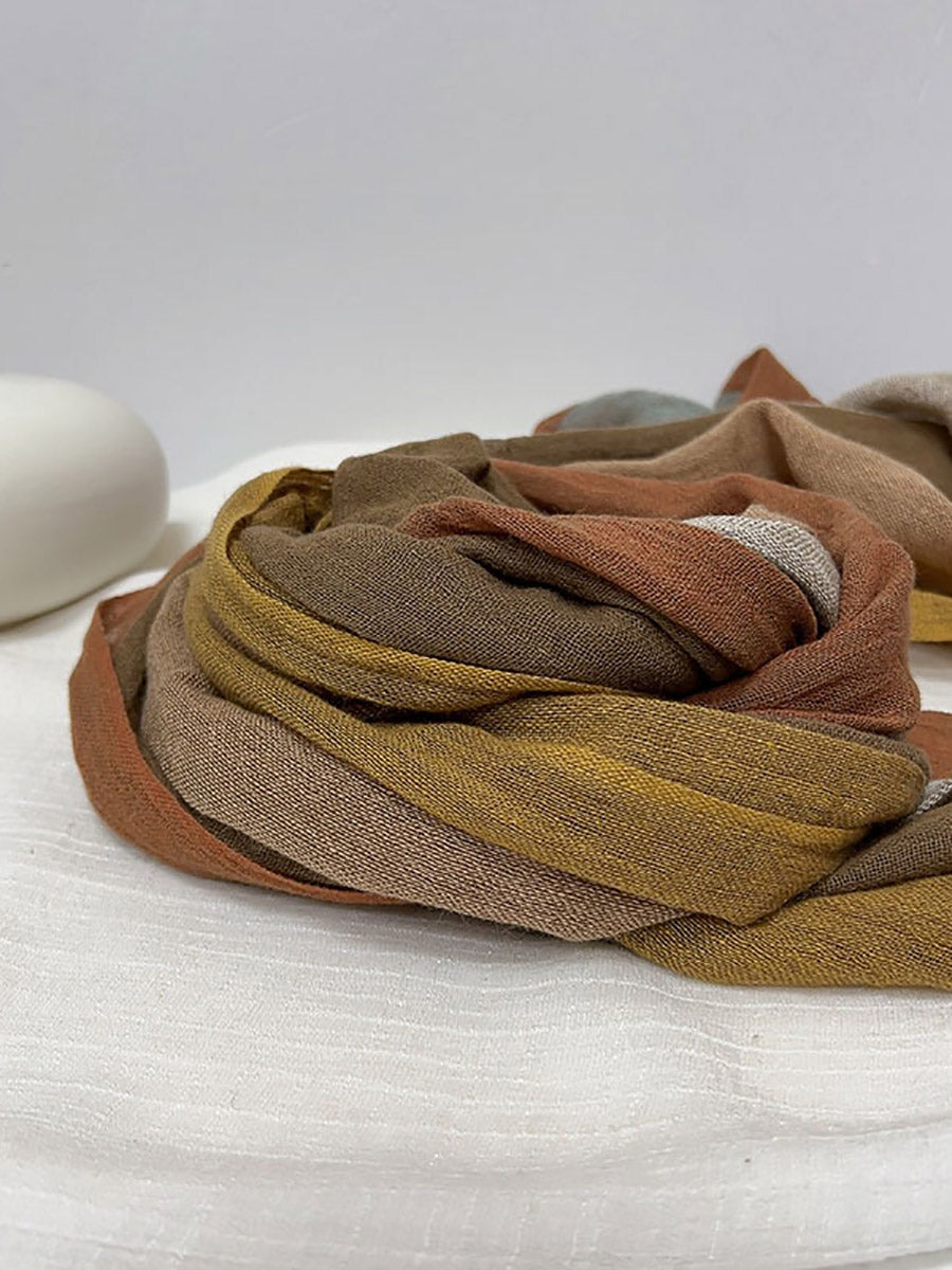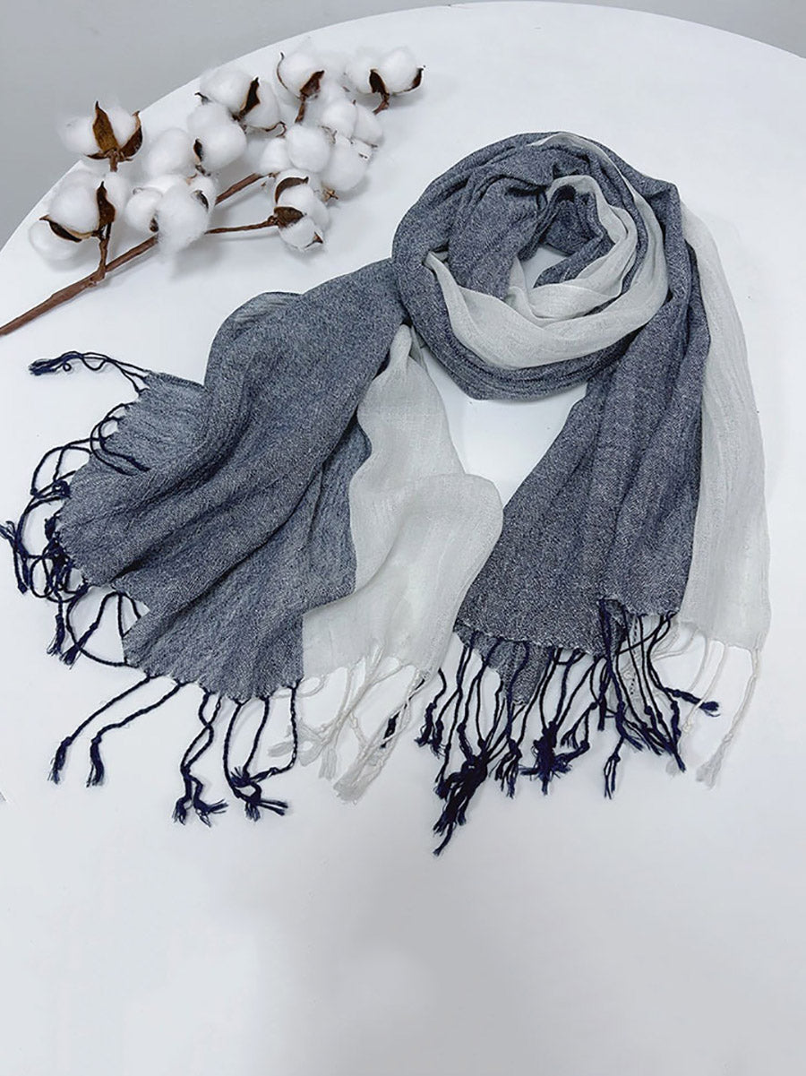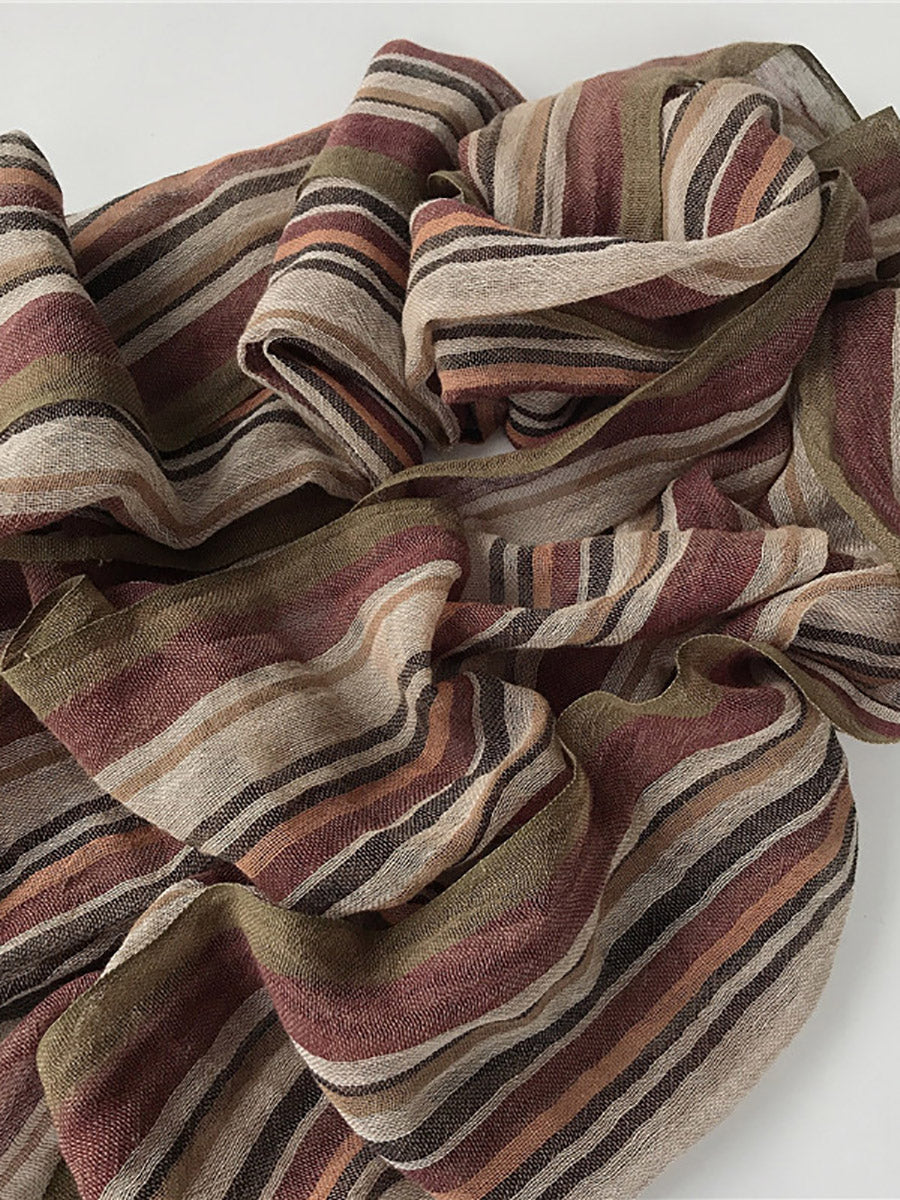 Damski szalik w paski w stylu vintage z kolorowymi blokami i frędzlami z bawełny i lnu