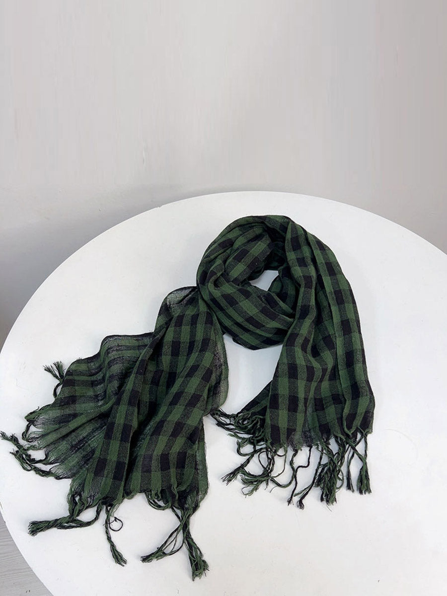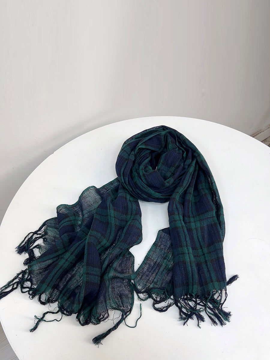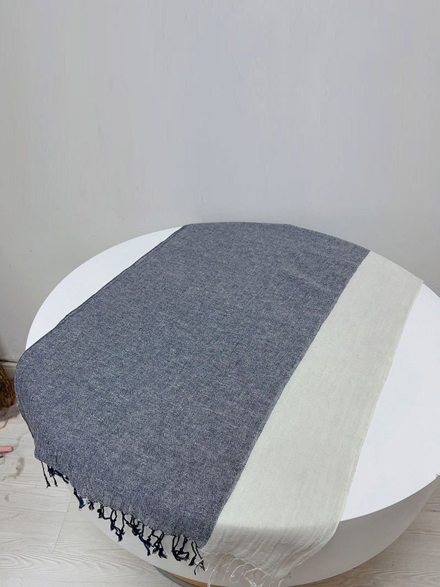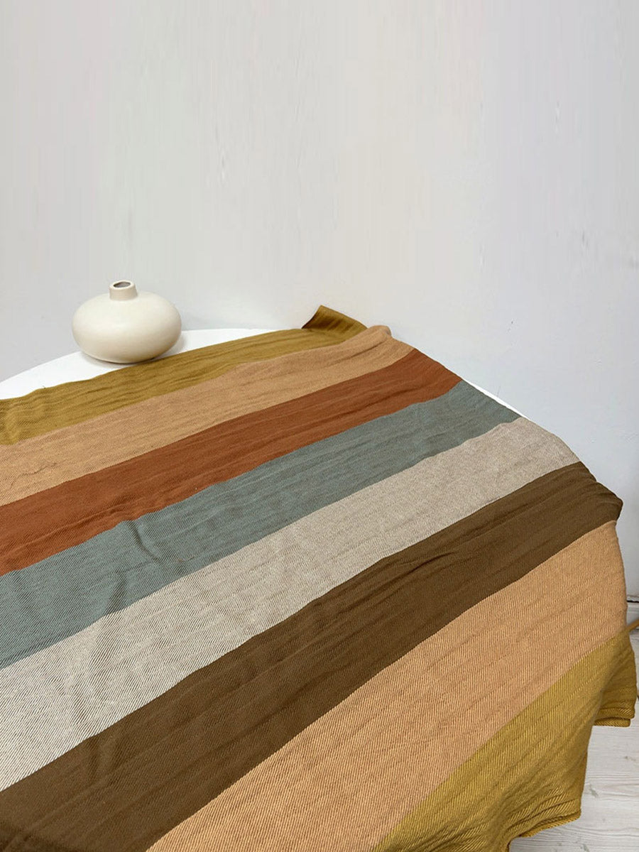 Damski szalik w paski w stylu vintage z kolorowymi blokami i frędzlami z bawełny i lnu