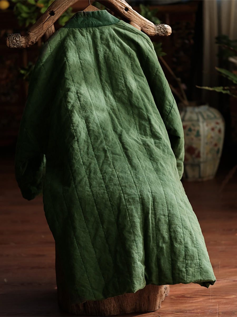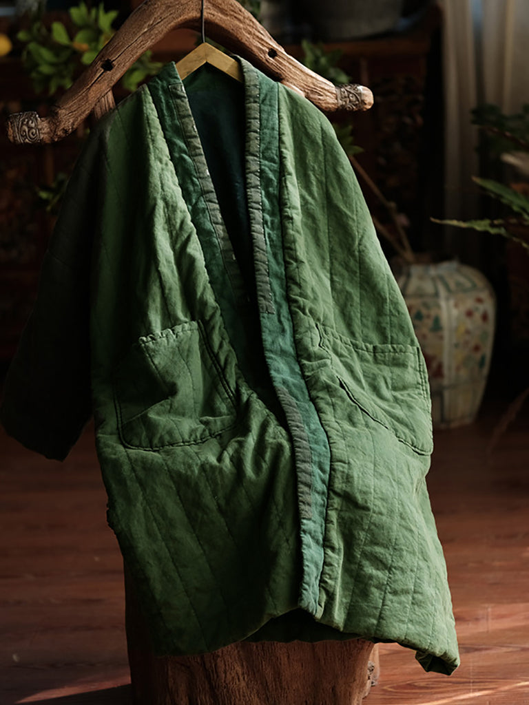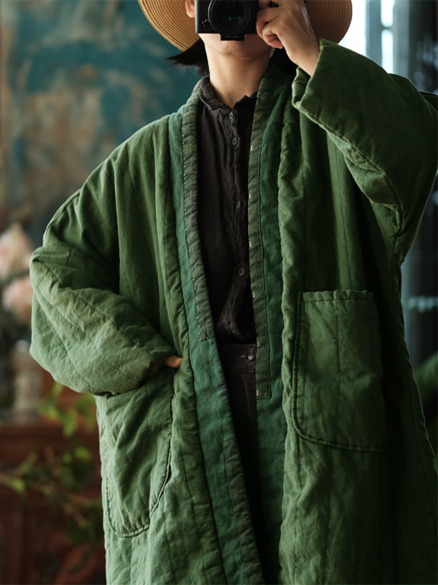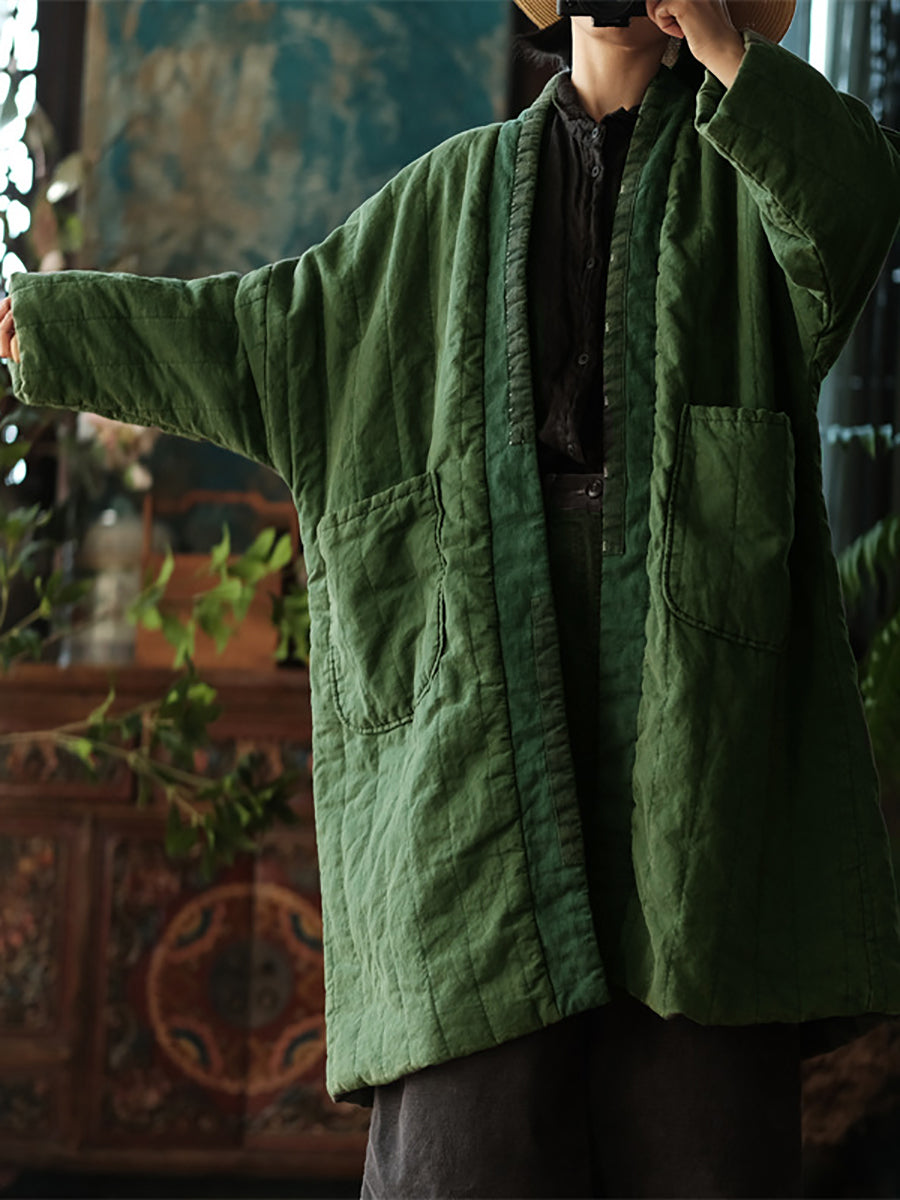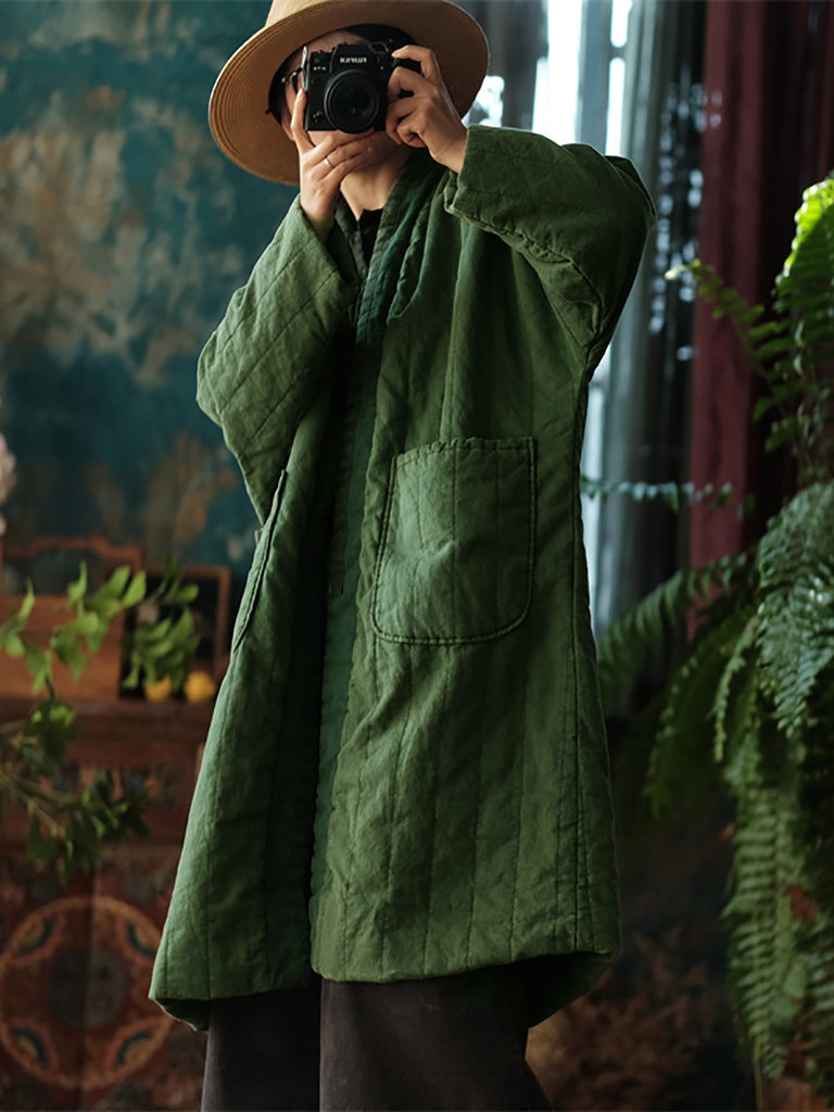 Ten długi płaszcz jest idealny dla kobiet, które chcą zachować ciepło i styl tej zimy. Wykonany z bawełny płaszcz ma klasyczny design z blokami kolorów, kołnierz w kształcie litery V i pełne rękawy typu raglan. Idealny na chłodniejsze pory roku, zimę i jesień.