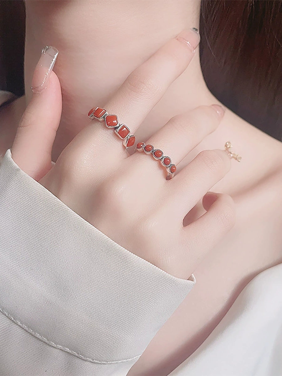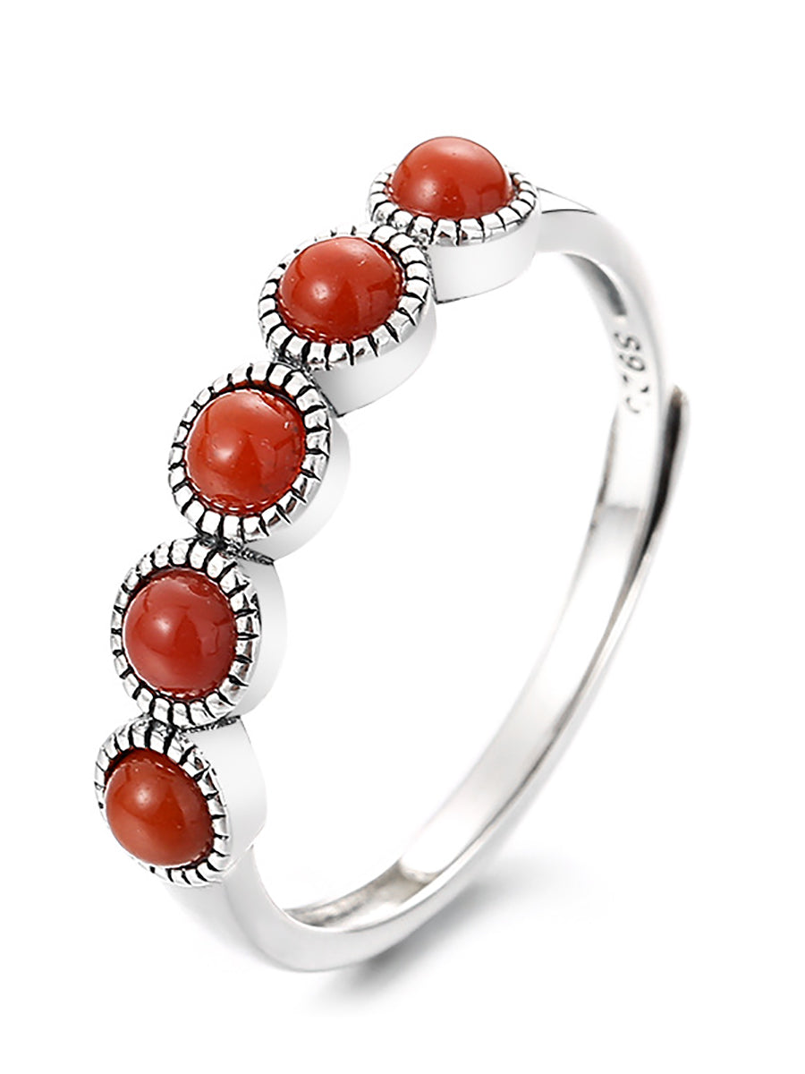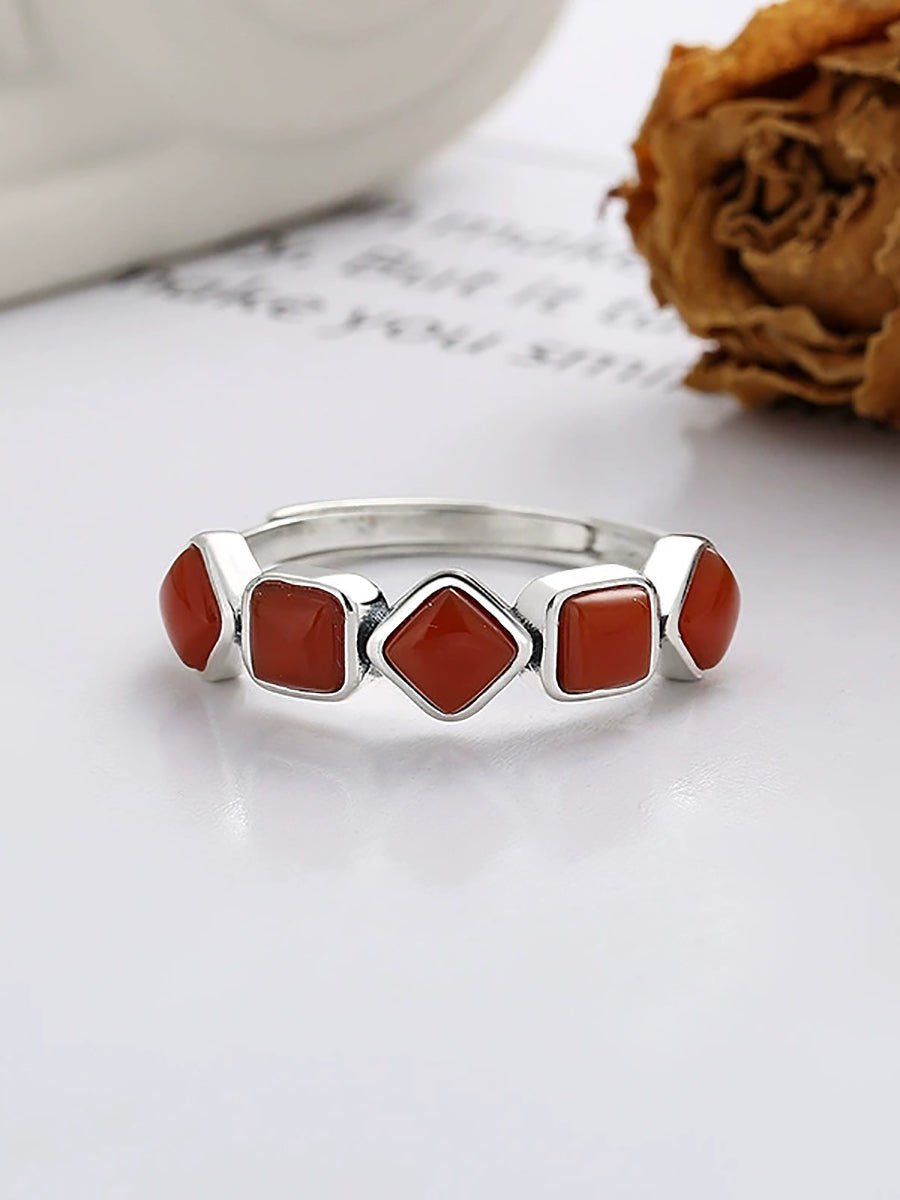 Vintage S925Srebrny regulowany pierścień z czerwonym agatem
