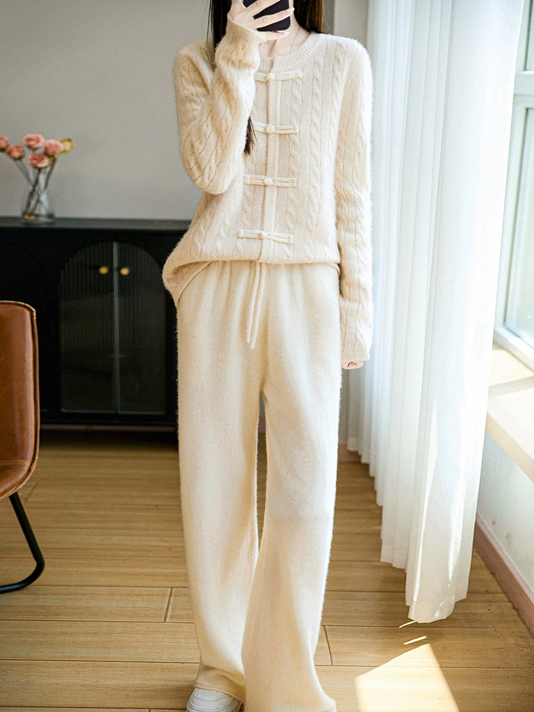 Damski jesienny etniczny ciepły wełniany sweter z okrągłym dekoltem