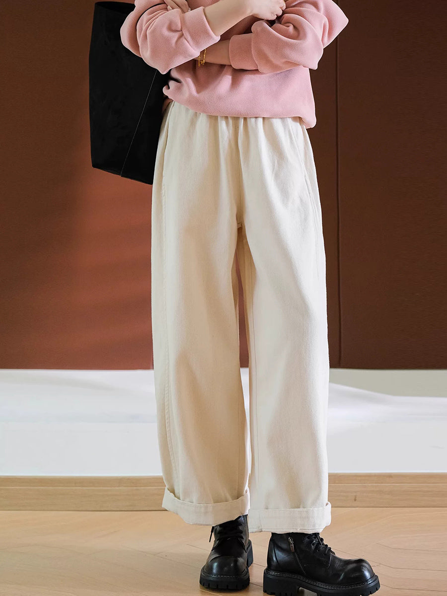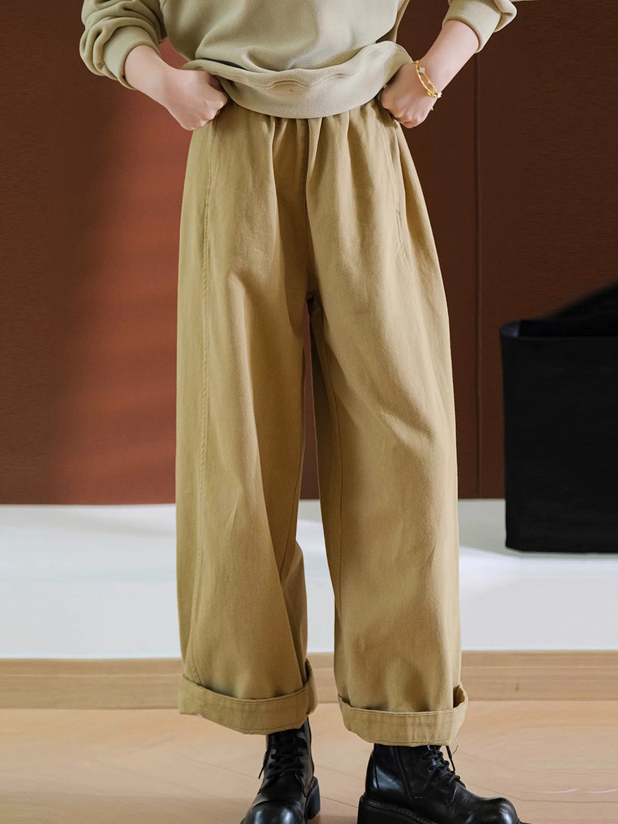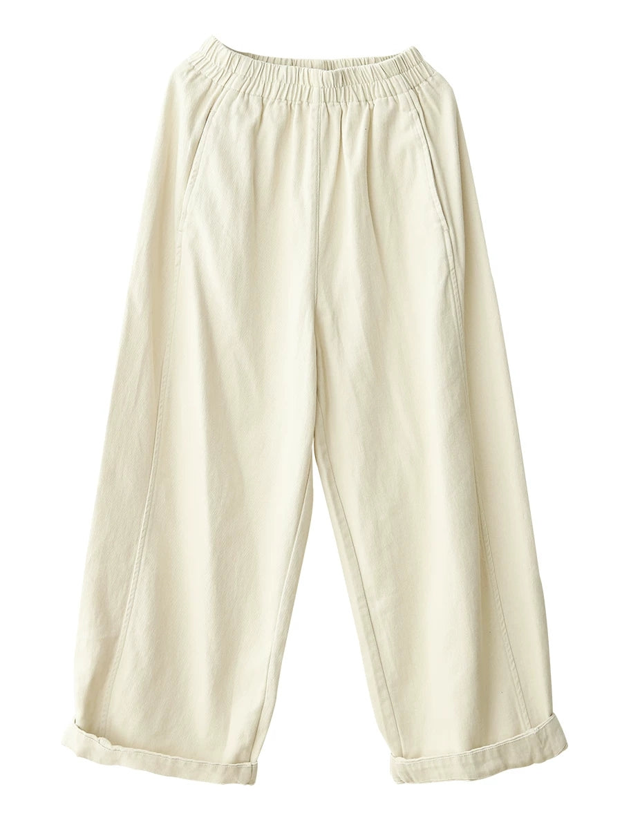 Damskie spodnie casualowe z szerokimi nogawkami, w jednolitym kolorze, 100% bawełny