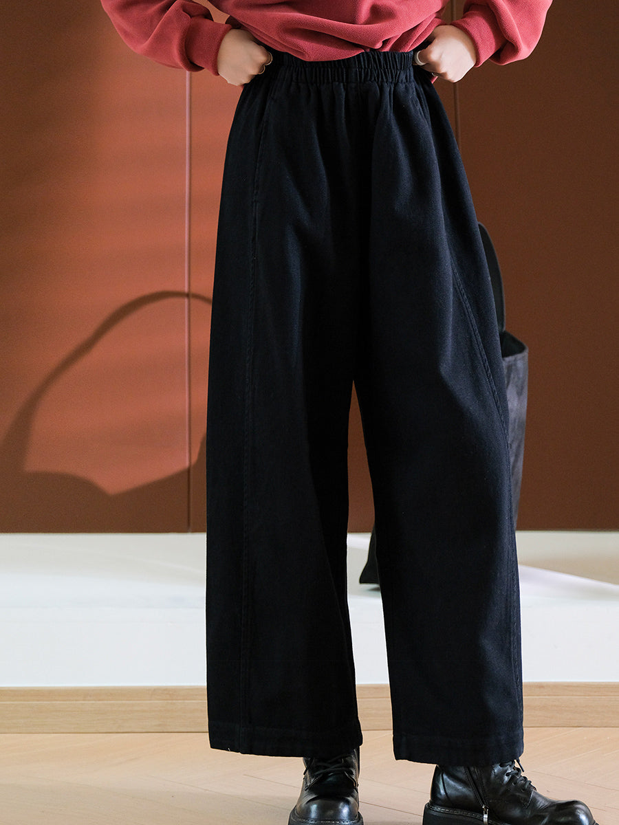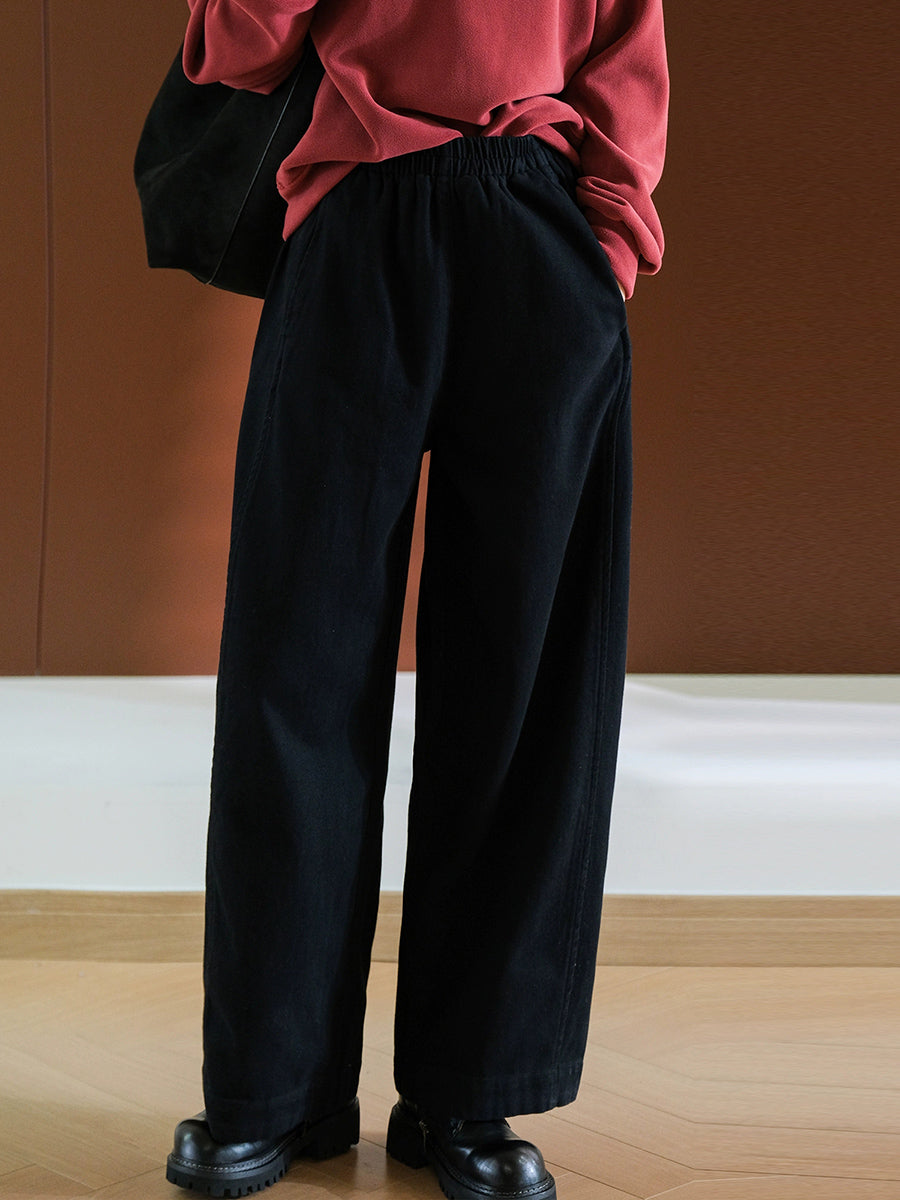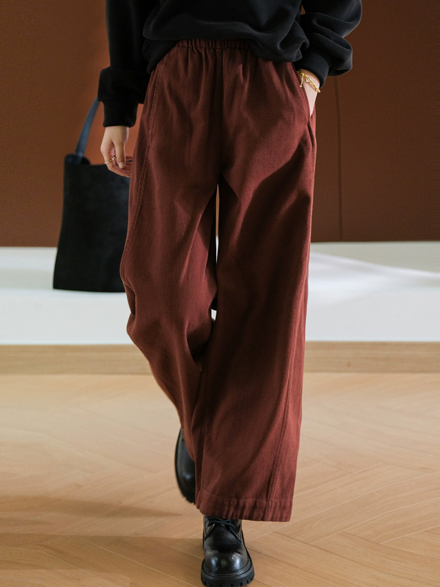 Damskie spodnie casualowe z szerokimi nogawkami, w jednolitym kolorze, 100% bawełny
