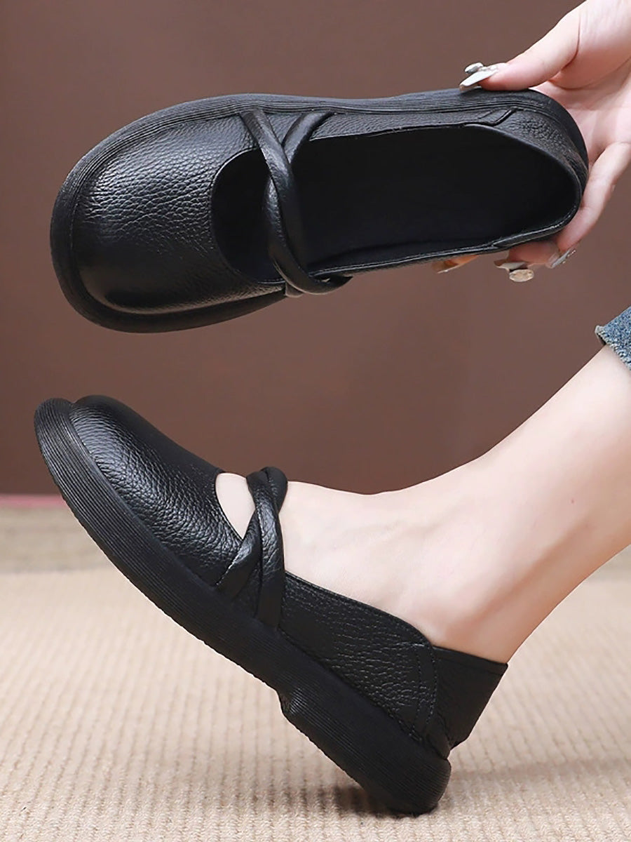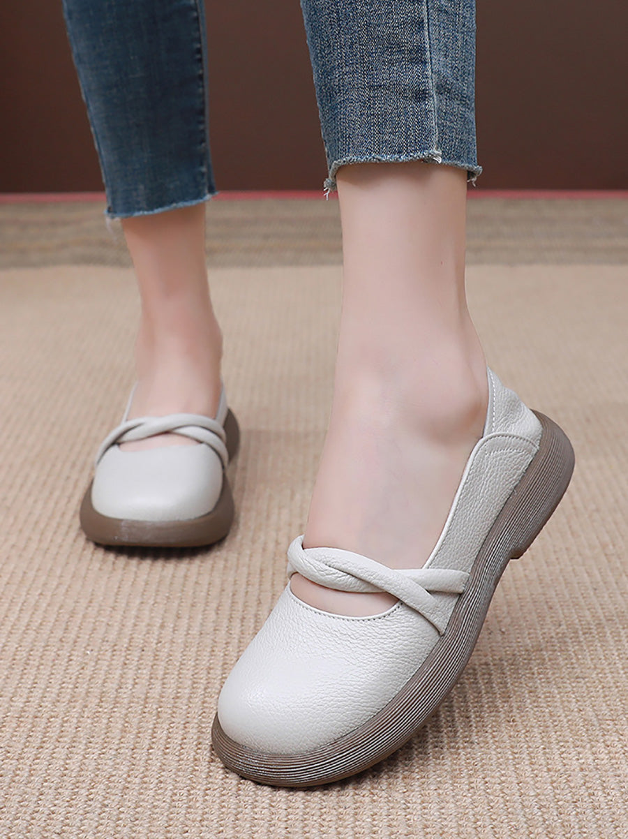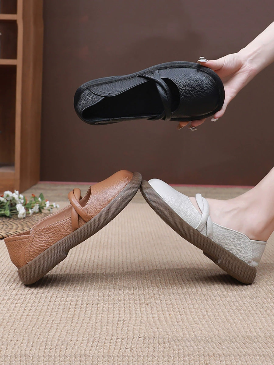 Damskie, codzienne, miękkie, skórzane, płaskie buty