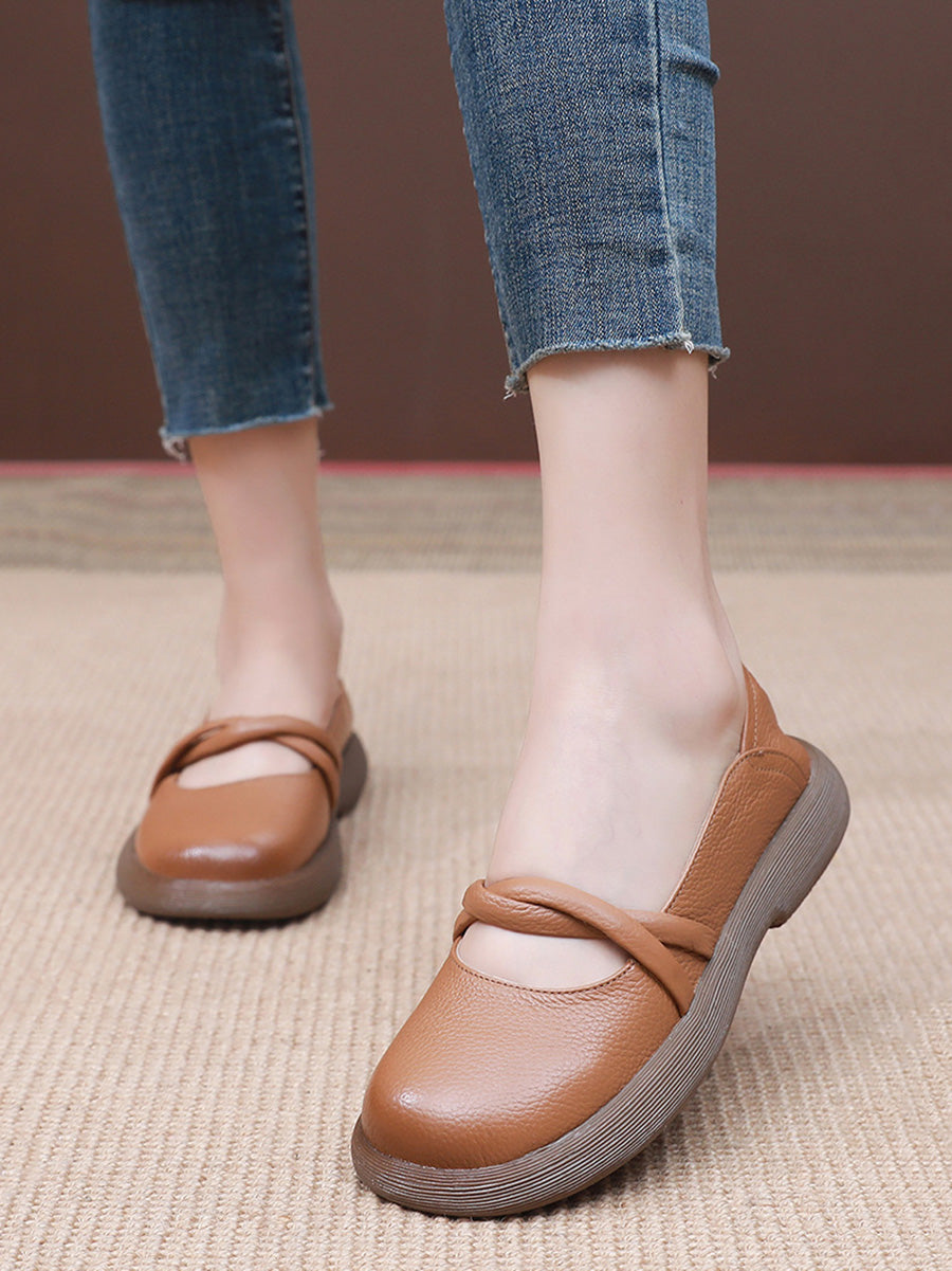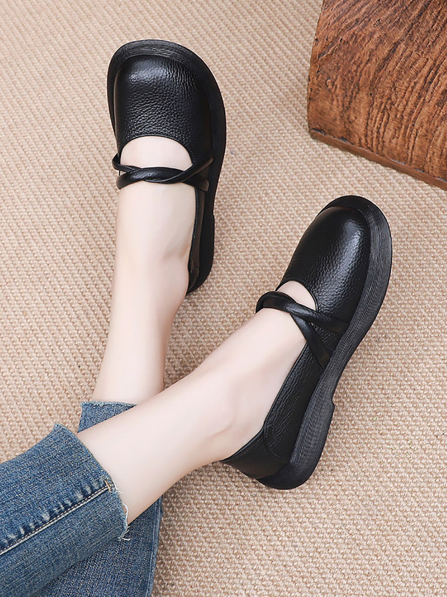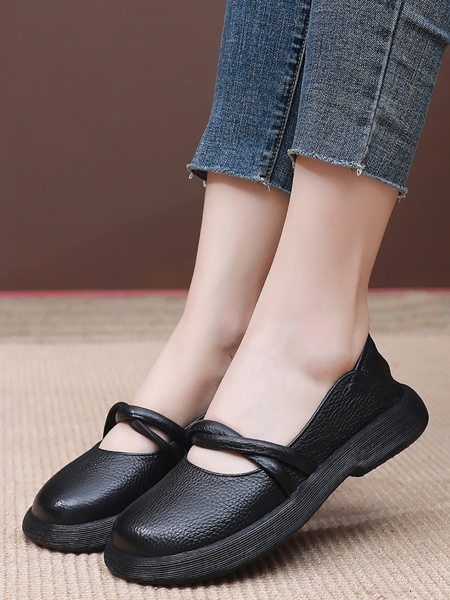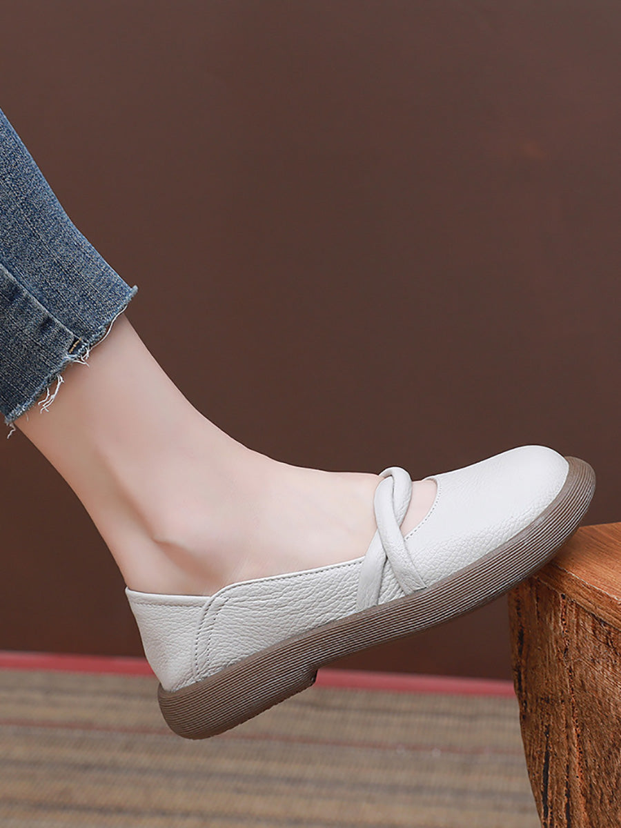 Damskie, codzienne, miękkie, skórzane, płaskie buty