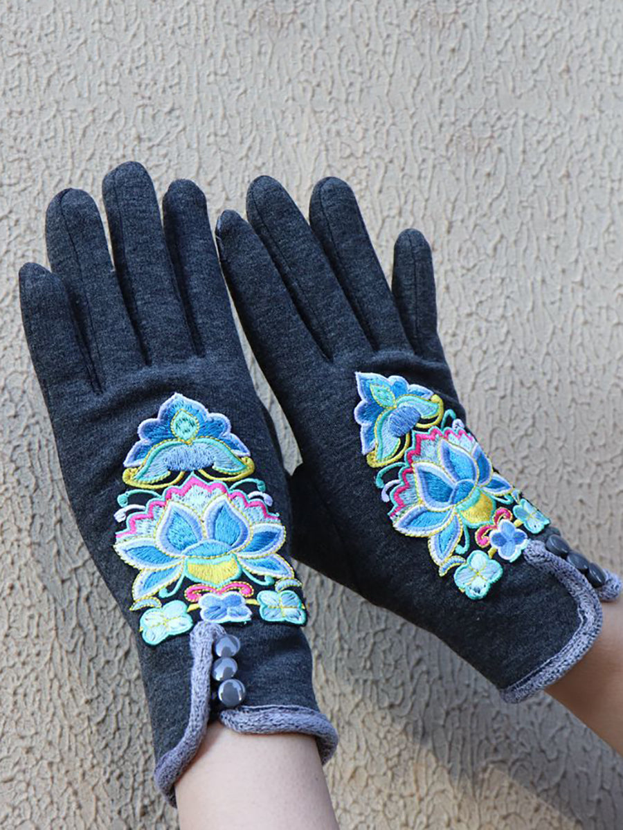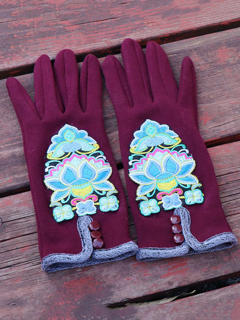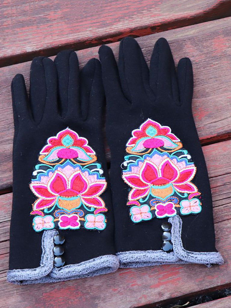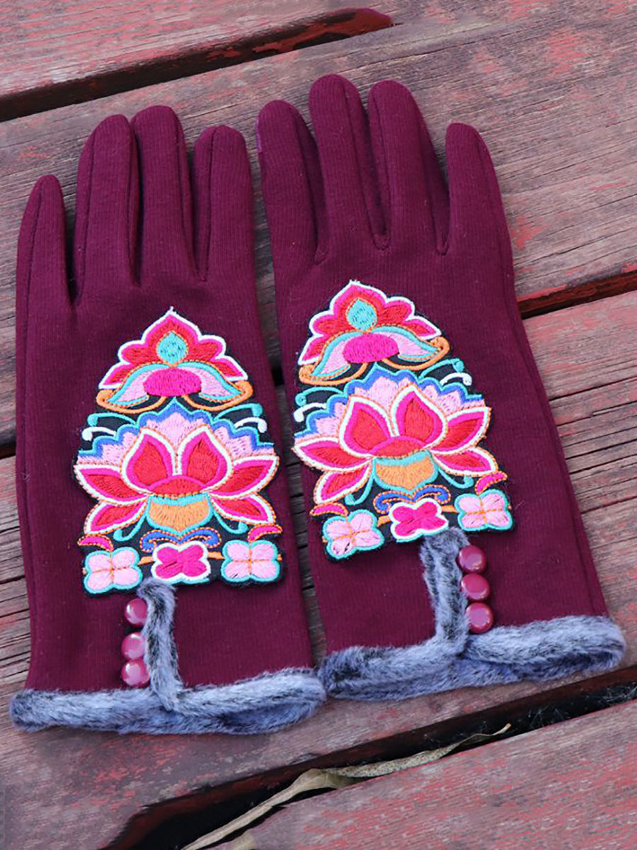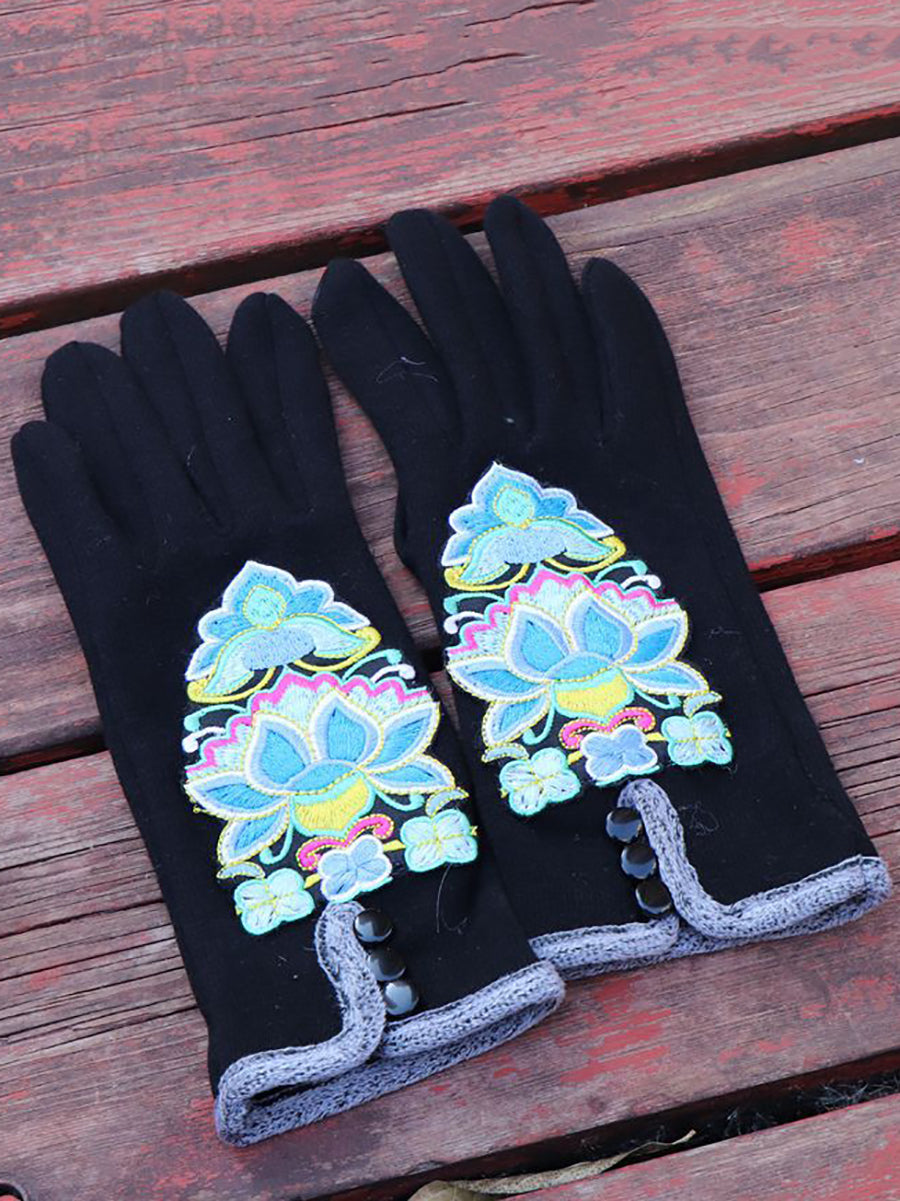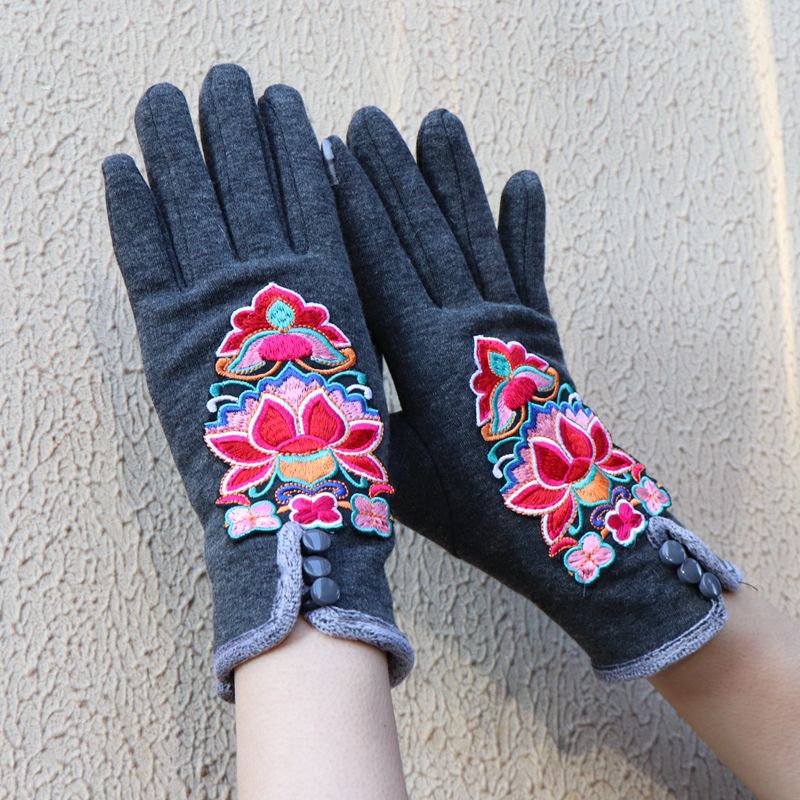 Damskie zimowe rękawiczki etniczne z haftem i podszewką z polaru