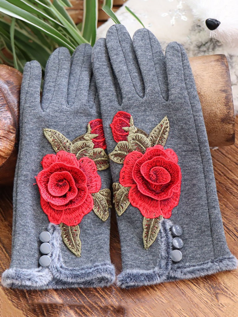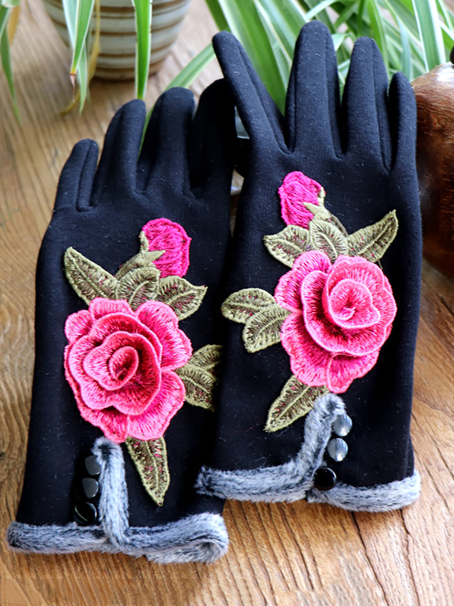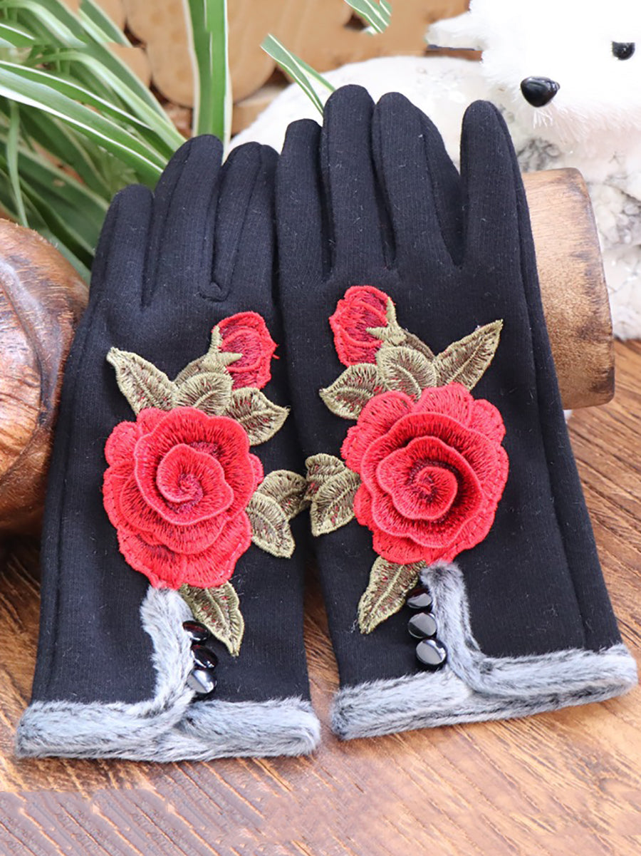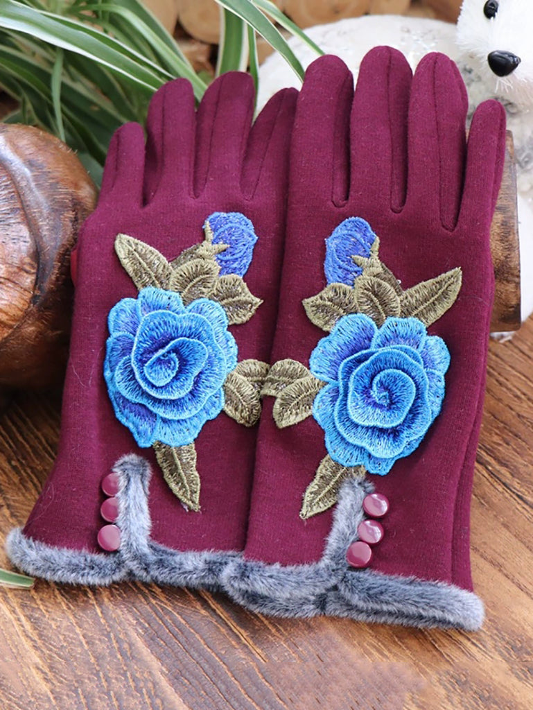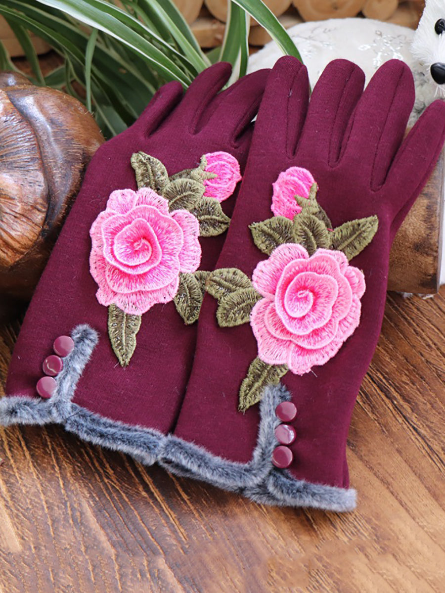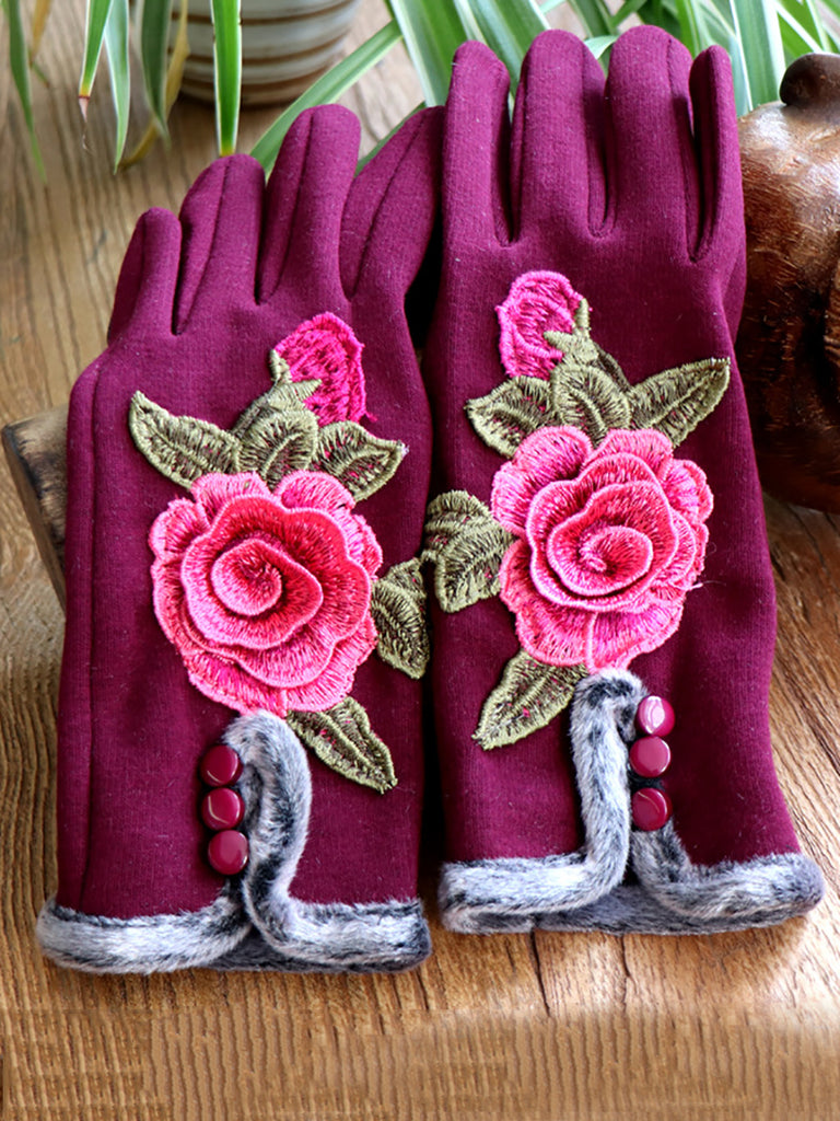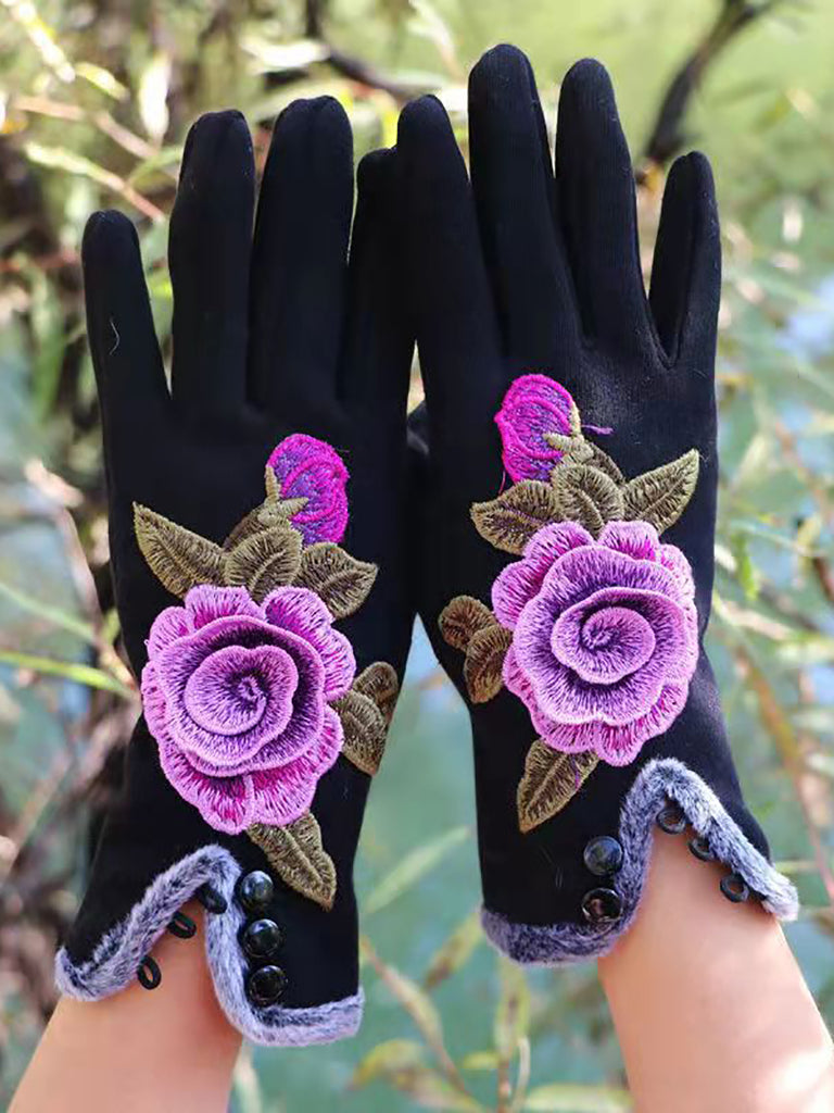 Damskie zimowe rękawiczki etniczne z haftem i podszewką z polaru
