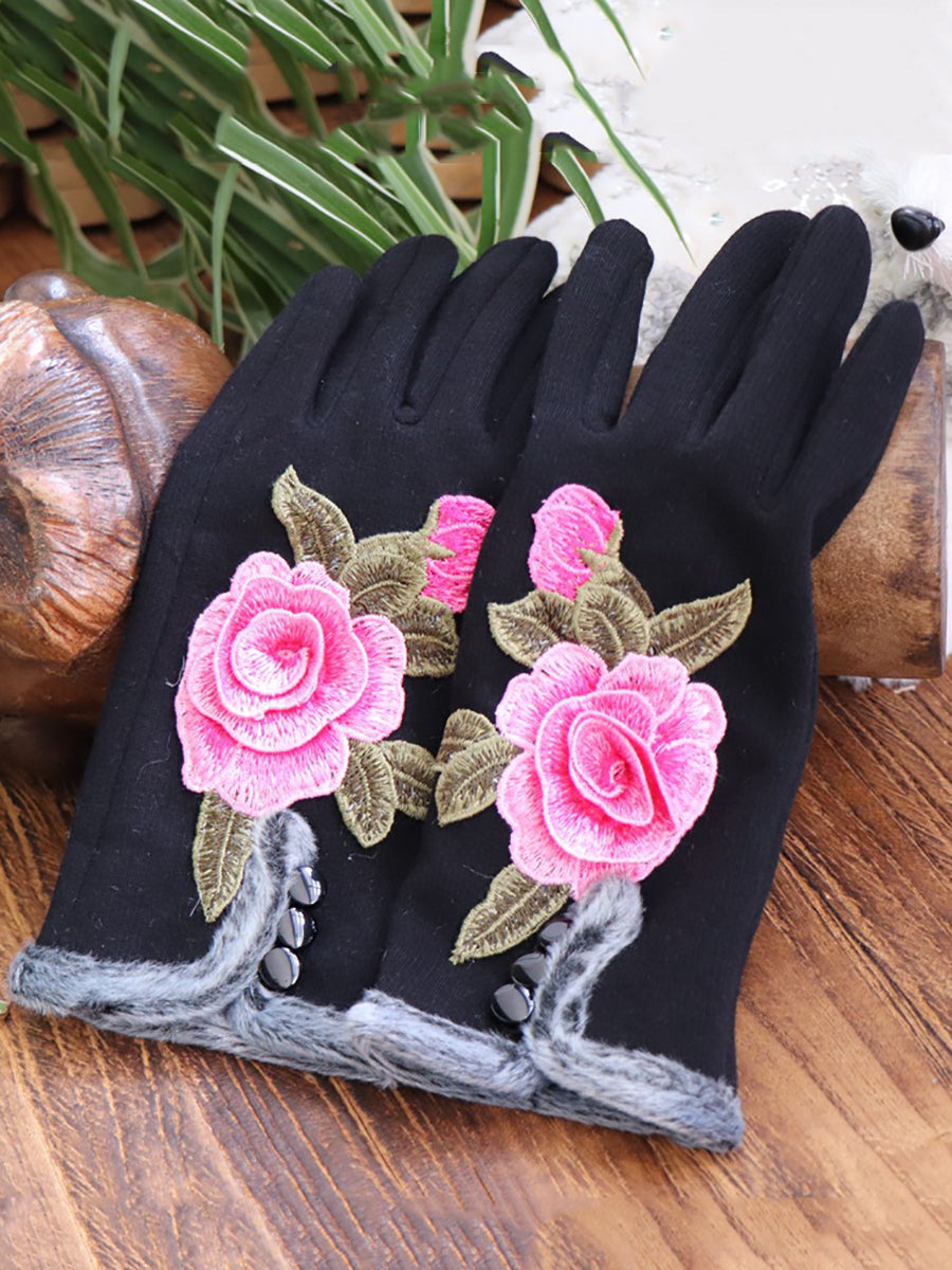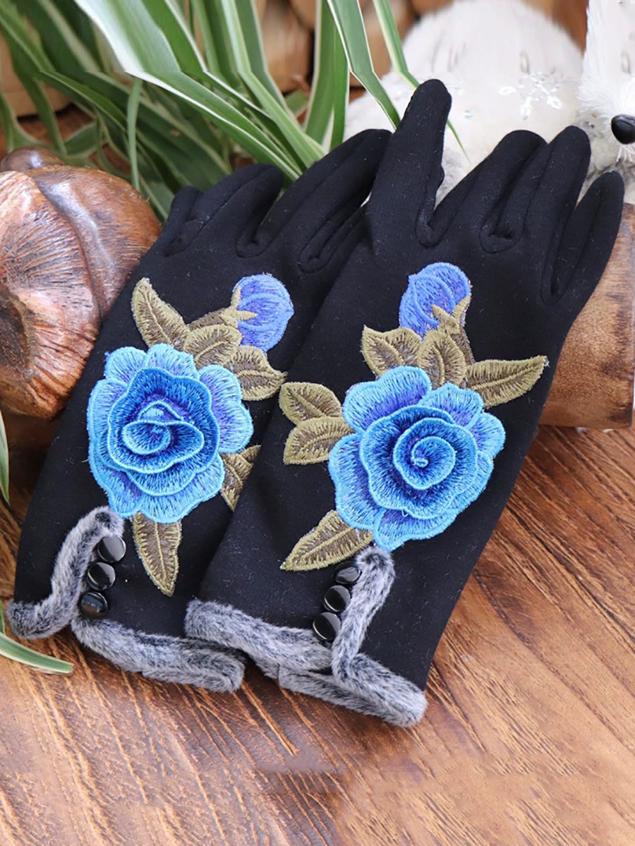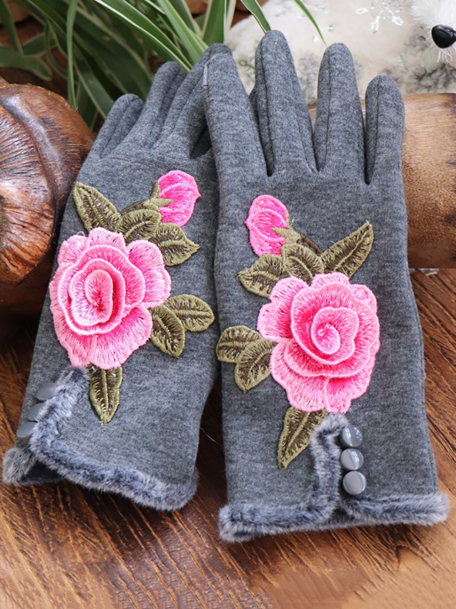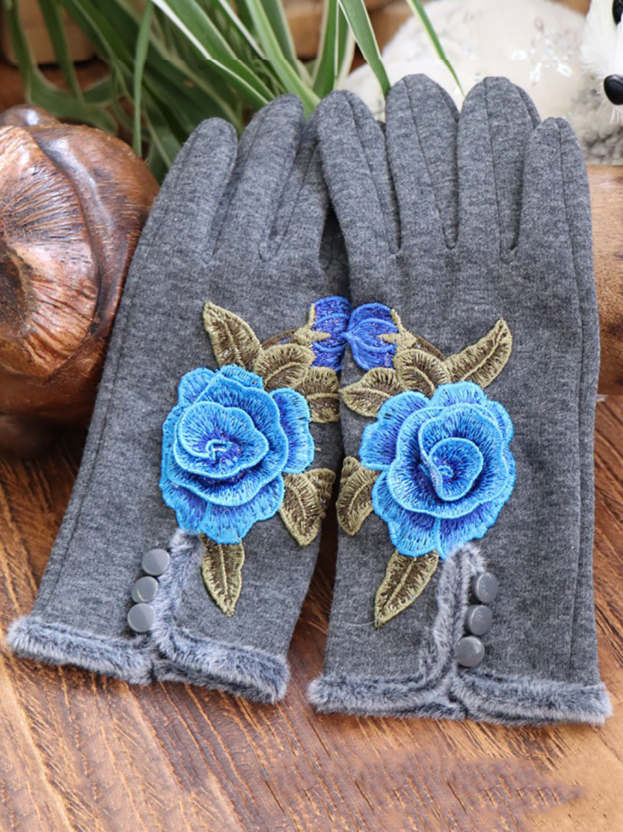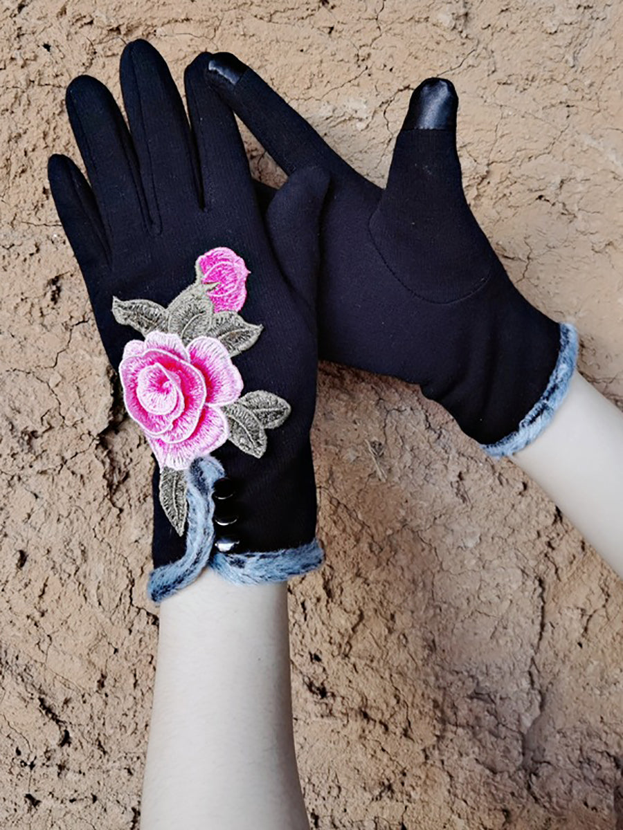 Damskie zimowe rękawiczki etniczne z haftem i podszewką z polaru