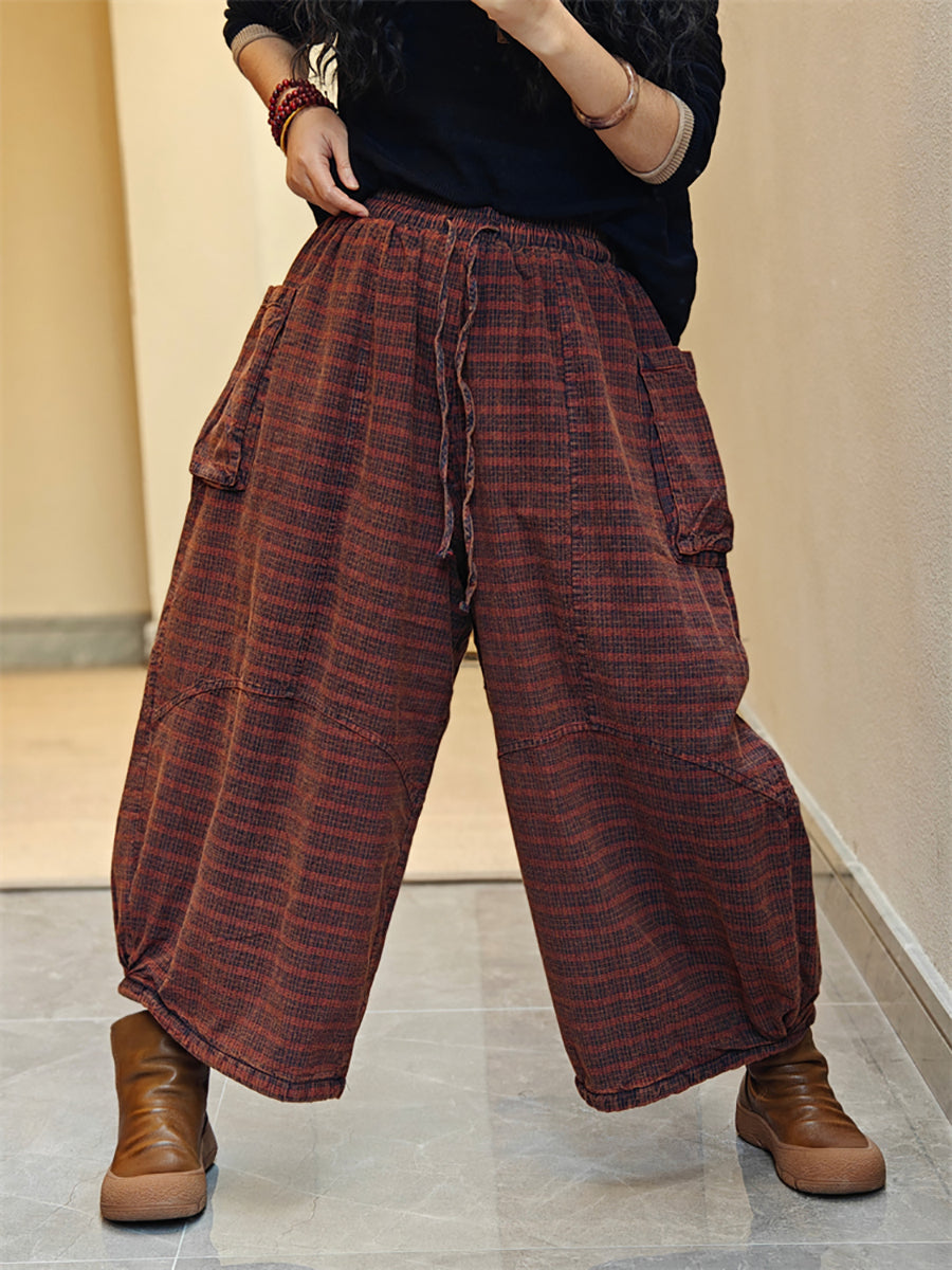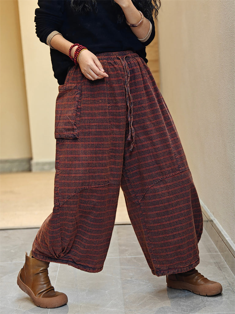Damskie wiosenne szerokie spodnie bawełniane w paski