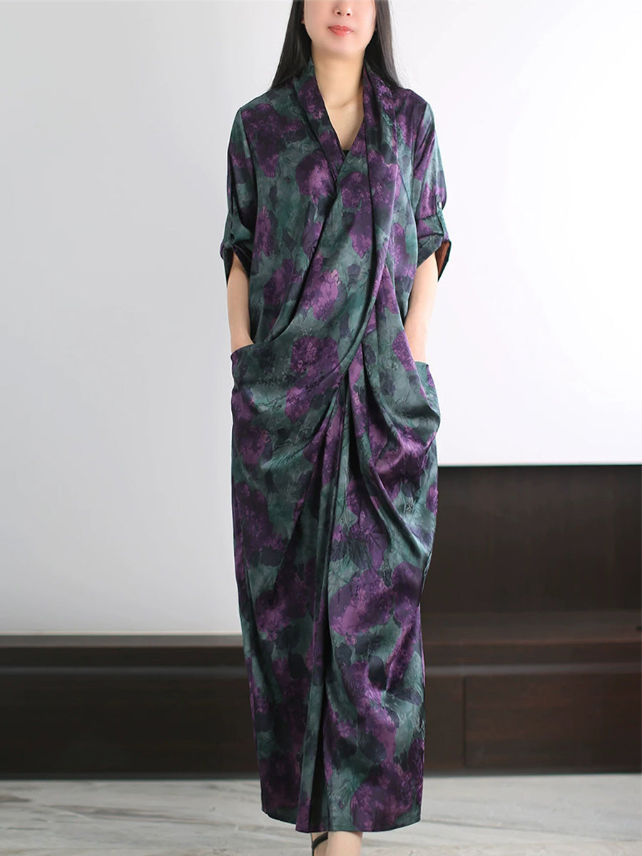 Damska letnia sukienka z kwiatowym wzorem i dekoltem w serek