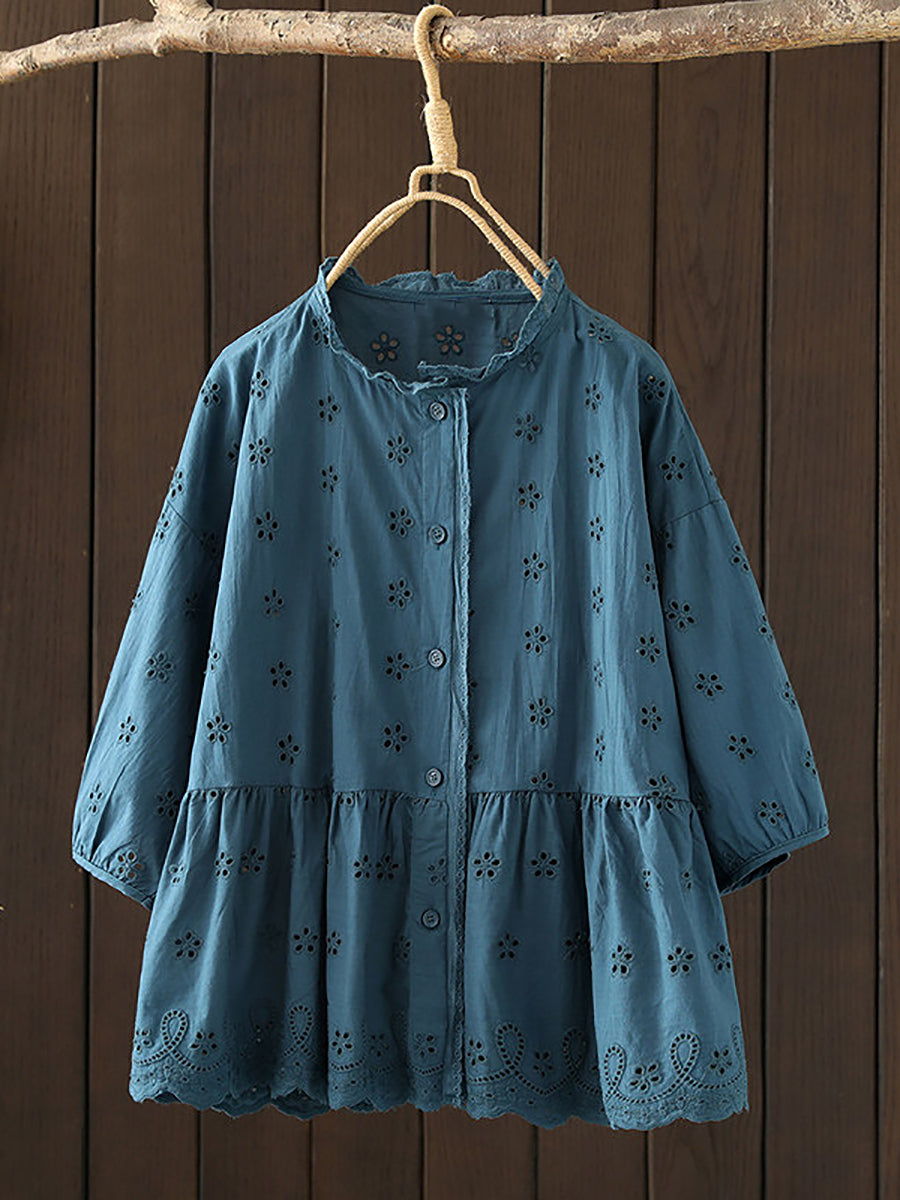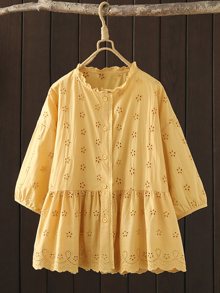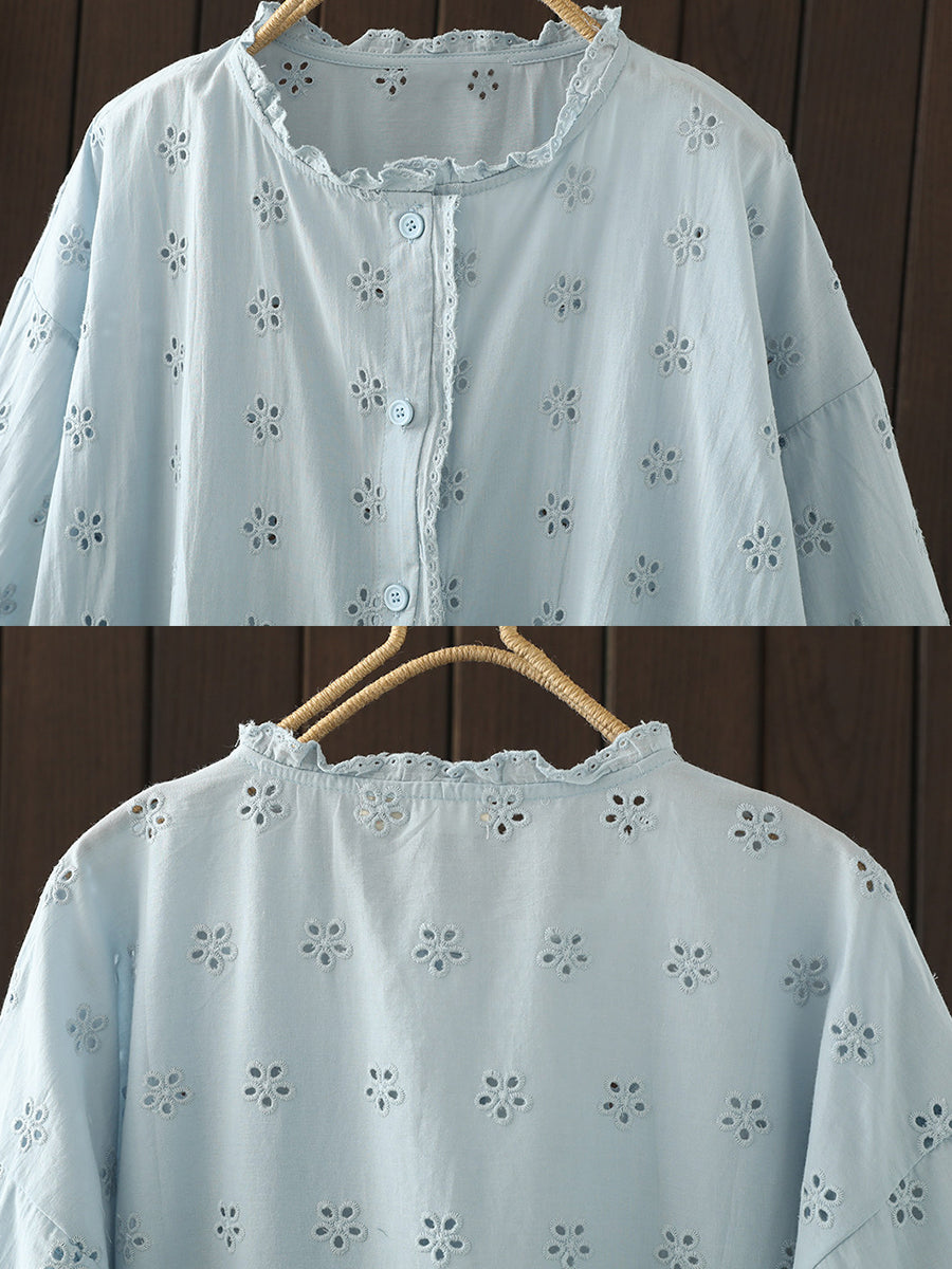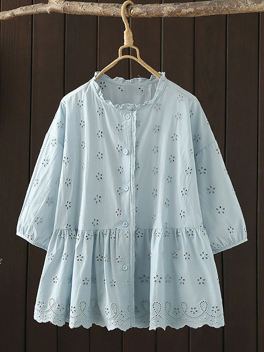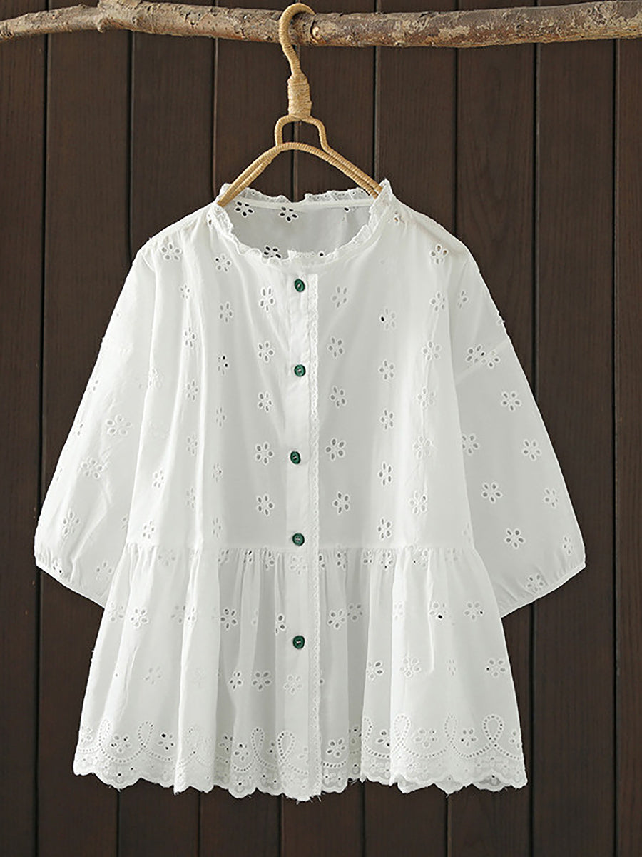 Damska letnia bluzka z motywem artystycznym Hollow Out Flower, 100% bawełny