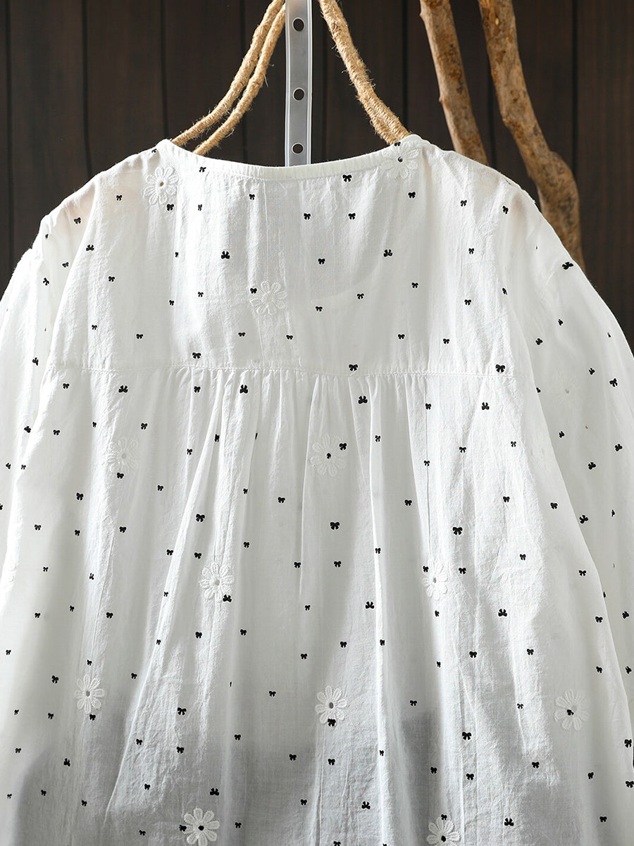 Damska letnia koszulka z haftem kokardkowym, 100% bawełny