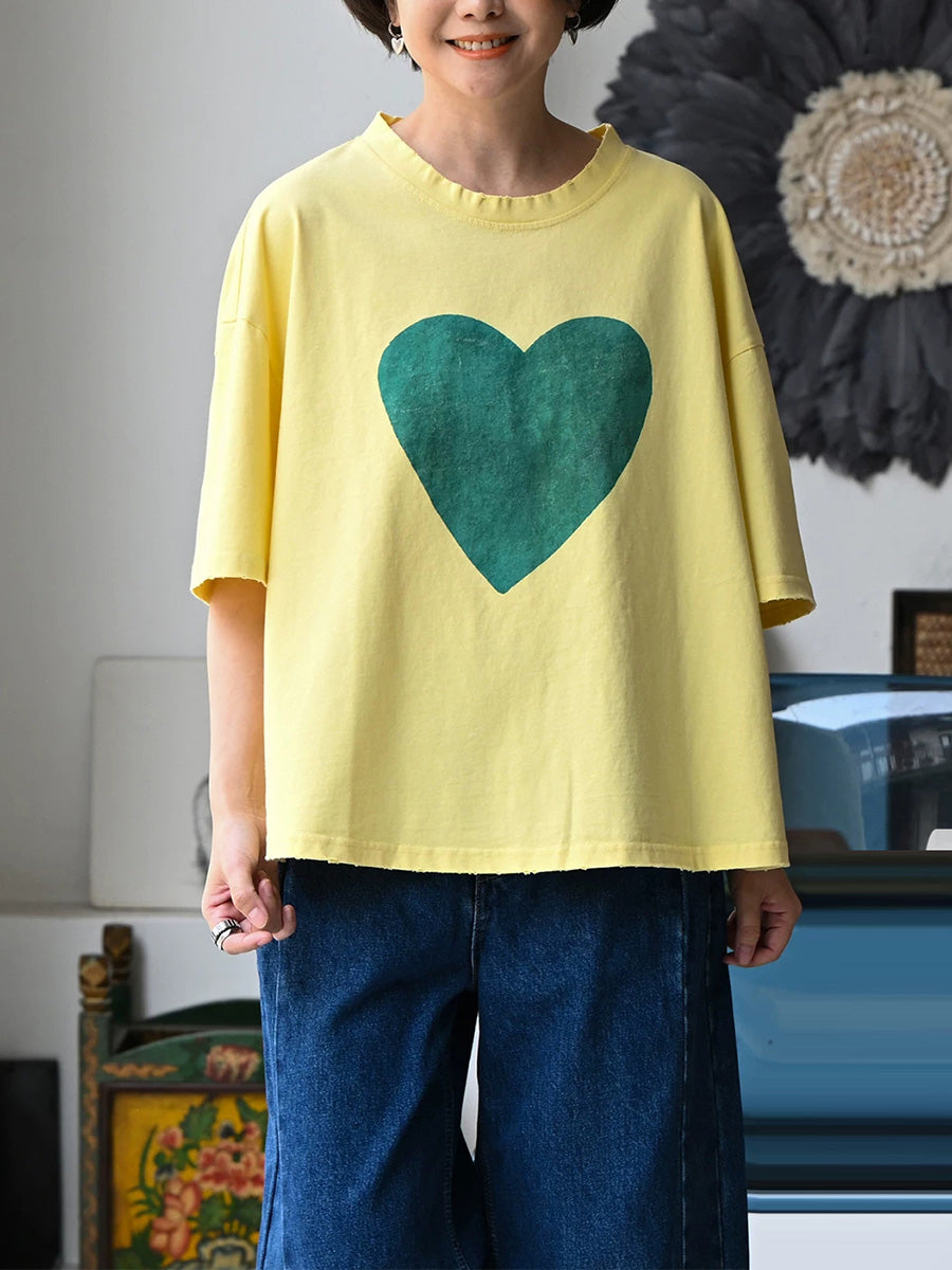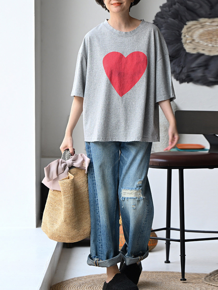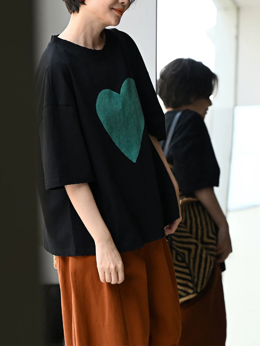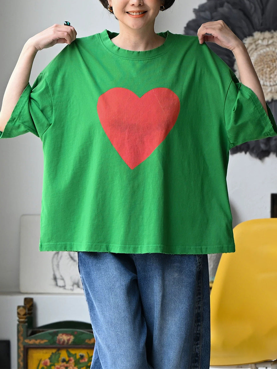 Damska letnia, swobodna koszulka z okrągłym dekoltem w kształcie serca, 100% bawełny