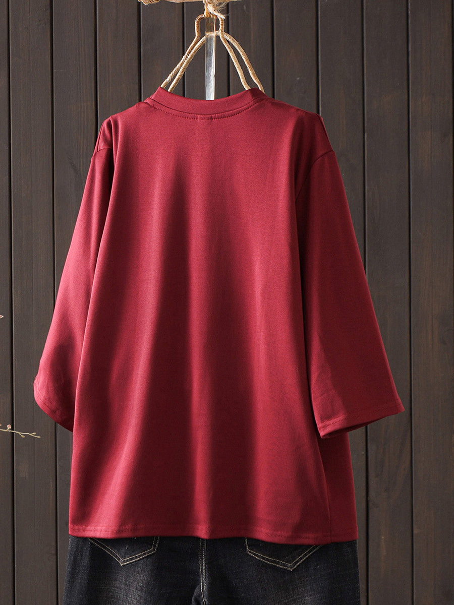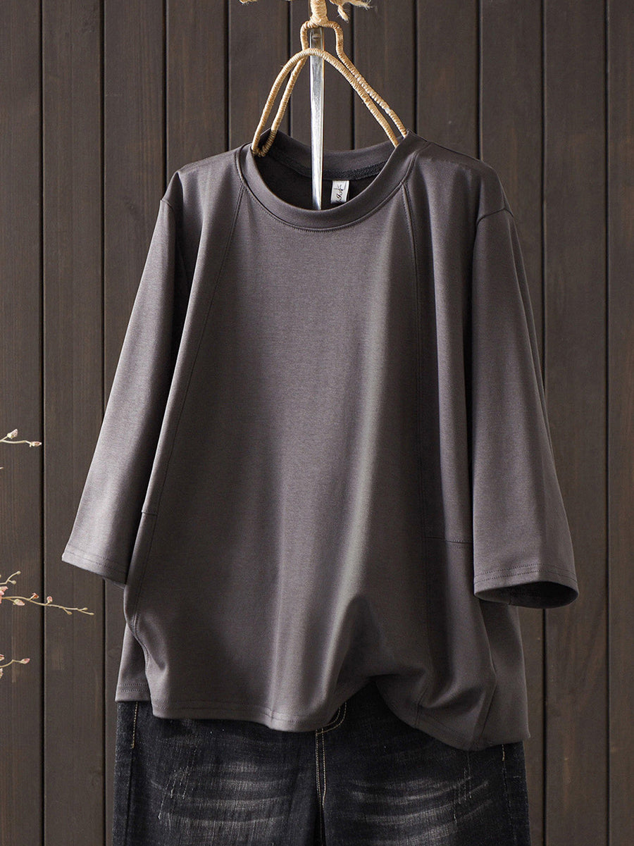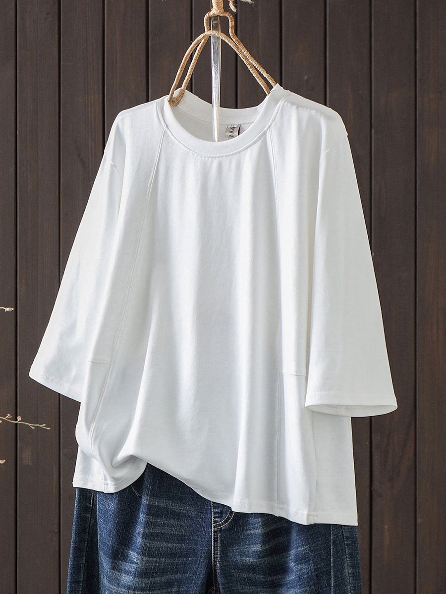 Damska letnia, swobodna, kolorowa, bawełniana koszulka z okrągłym dekoltem
