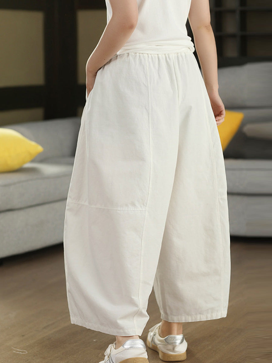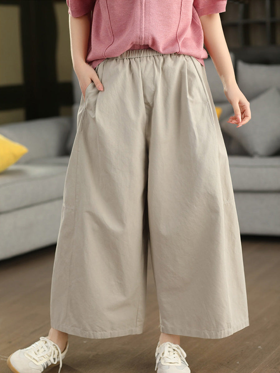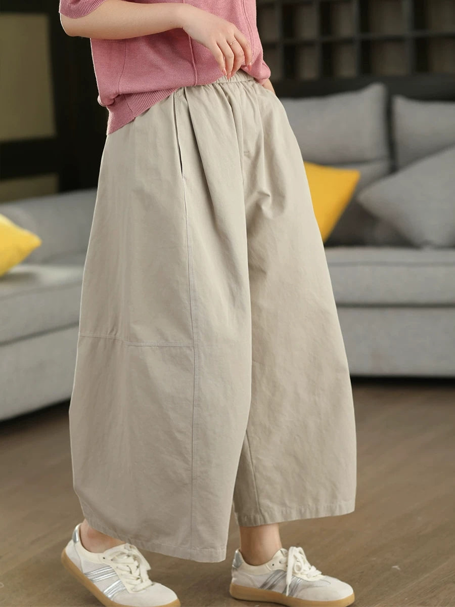 Damskie letnie, swobodne, jednokolorowe spodnie z szerokimi nogawkami, 100% bawełny