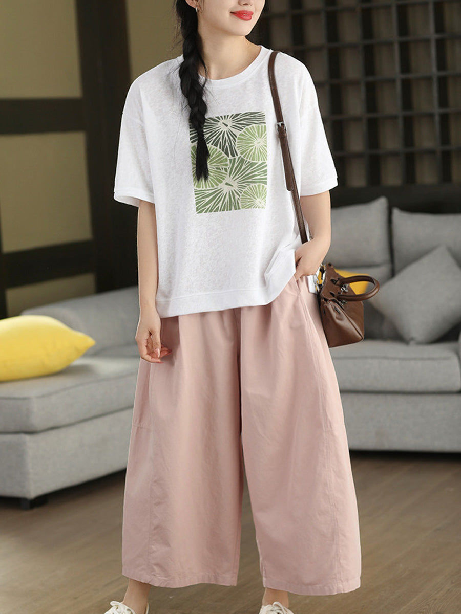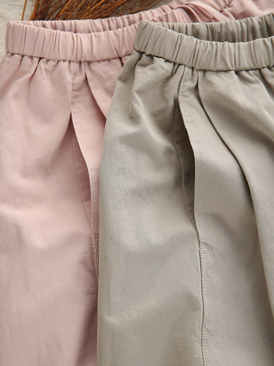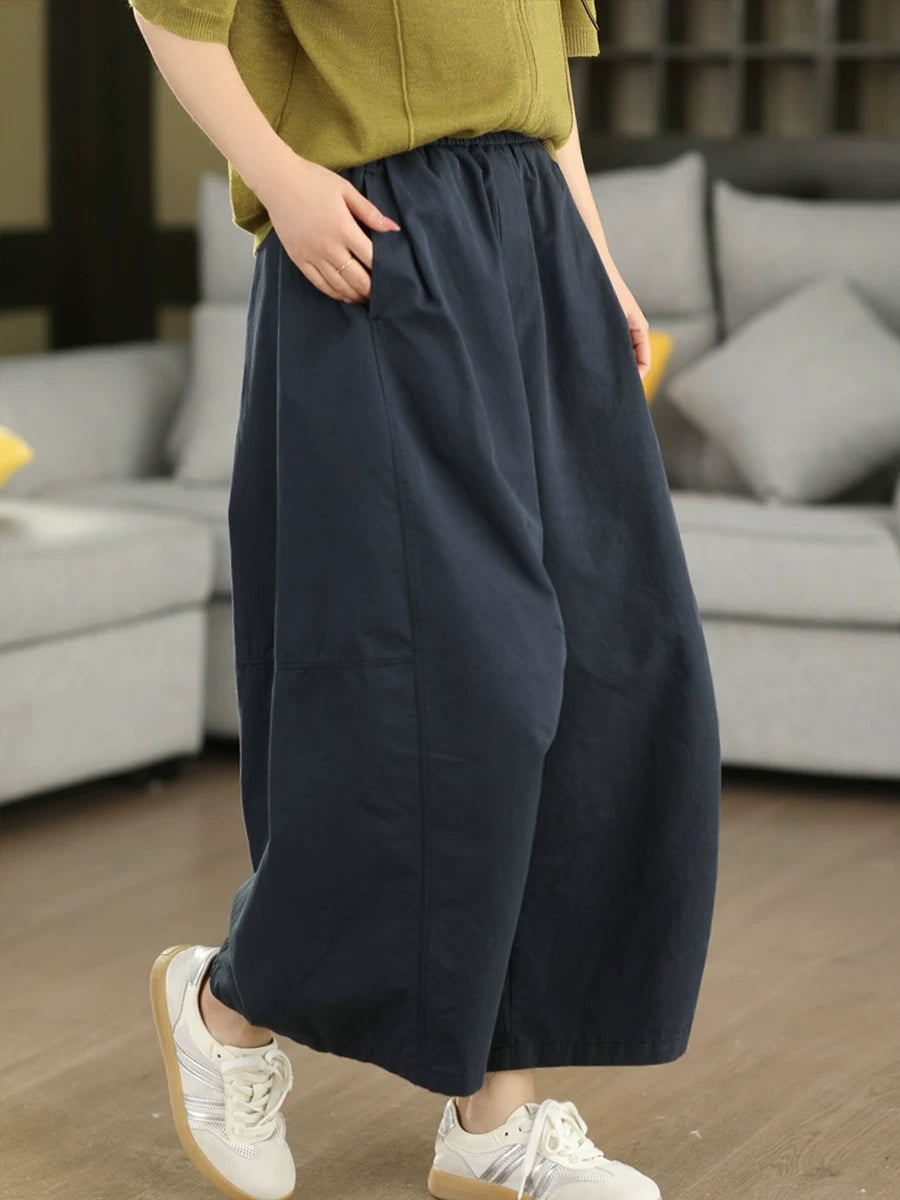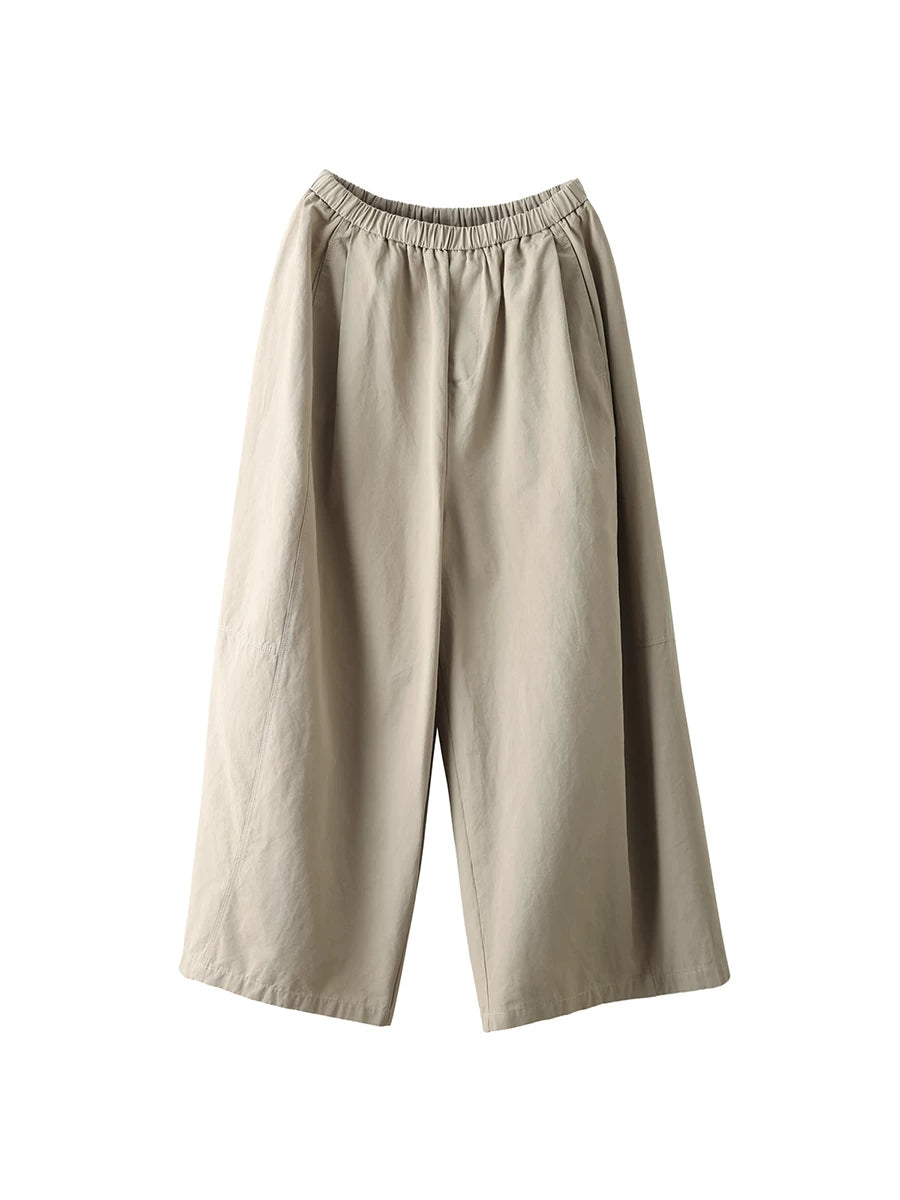 Damskie letnie, swobodne, jednokolorowe spodnie z szerokimi nogawkami, 100% bawełny