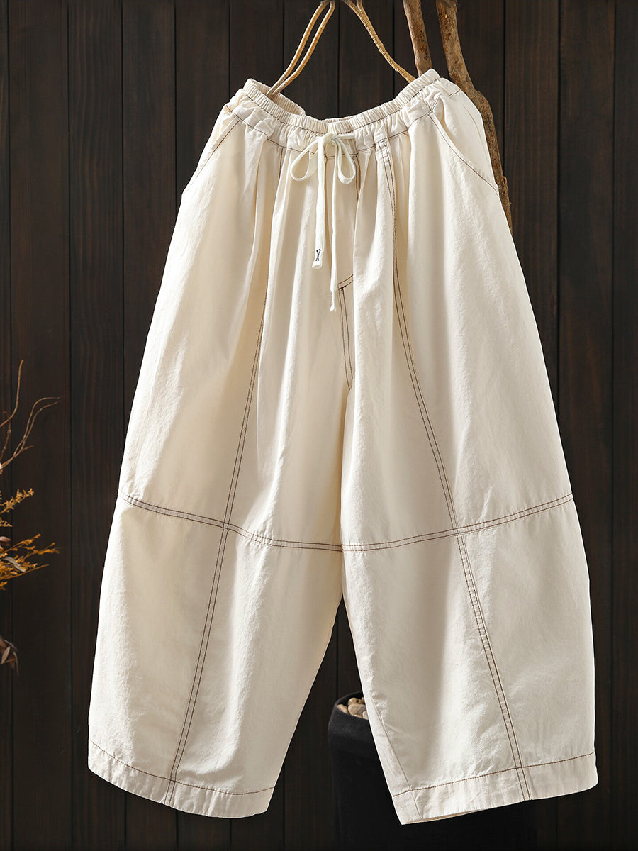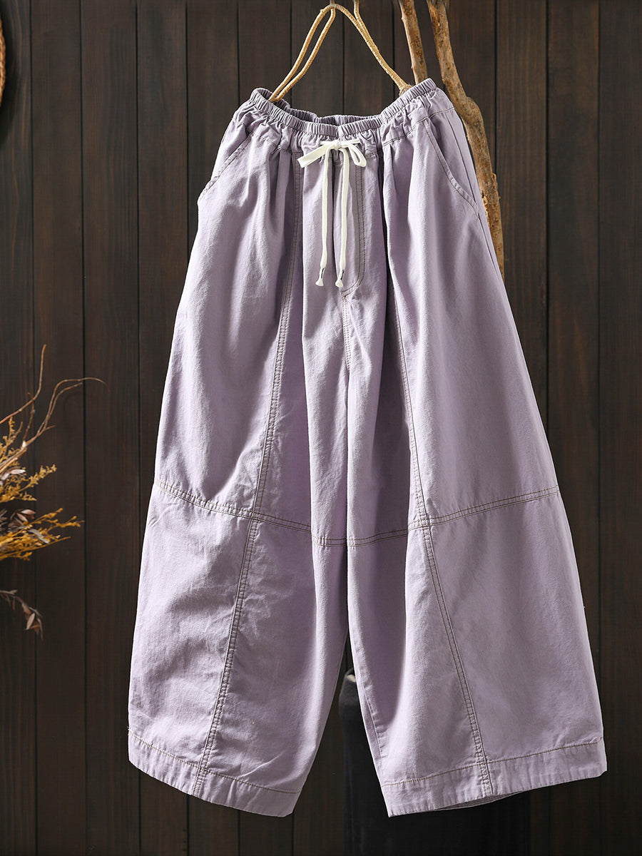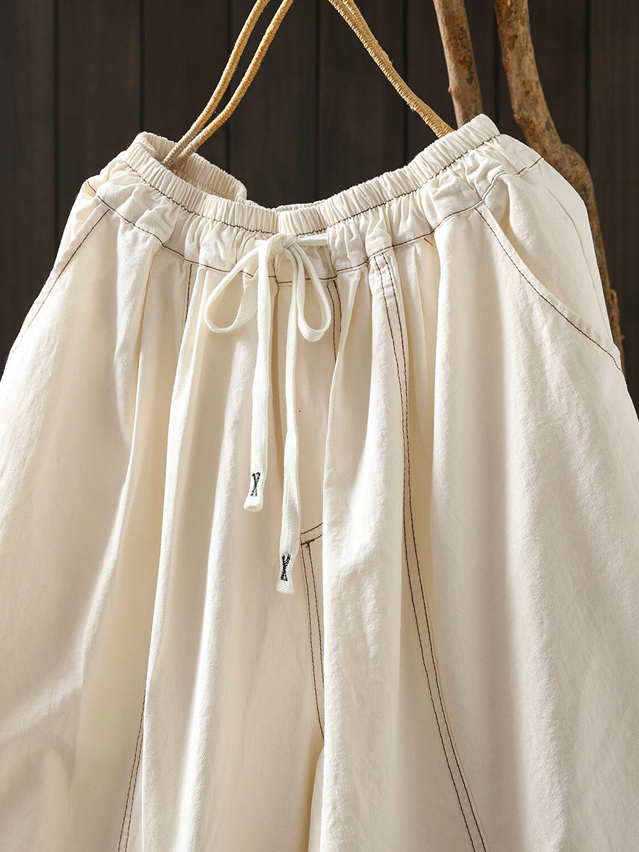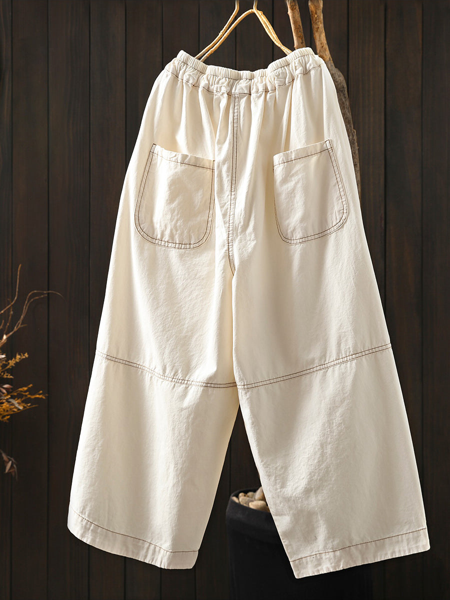 Damskie letnie, swobodne, jednokolorowe spodnie z szerokimi nogawkami