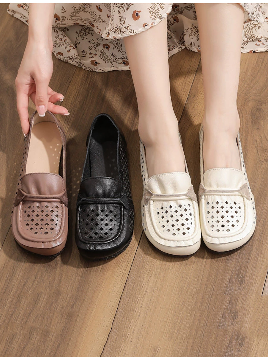 Damskie letnie buty z prawdziwej skóry z wycięciami