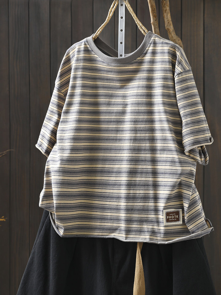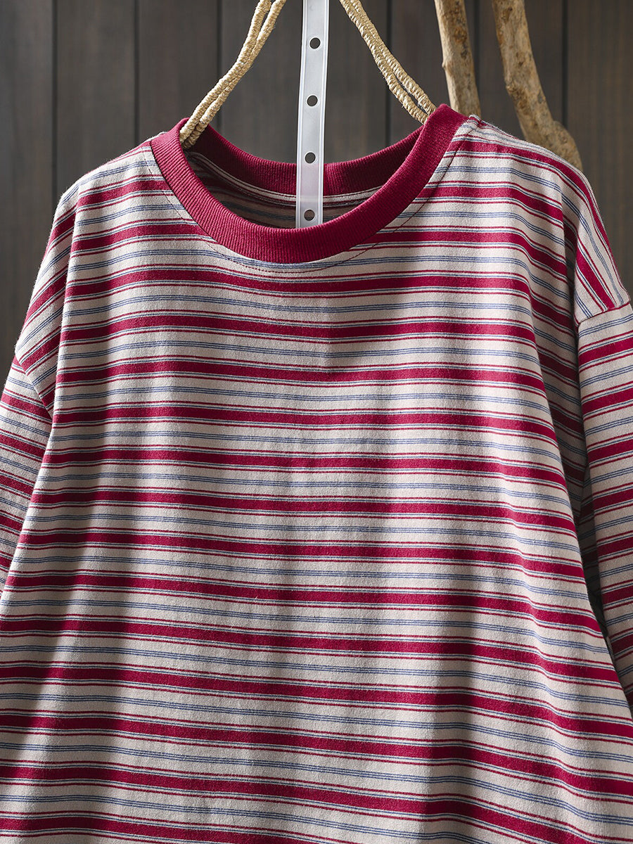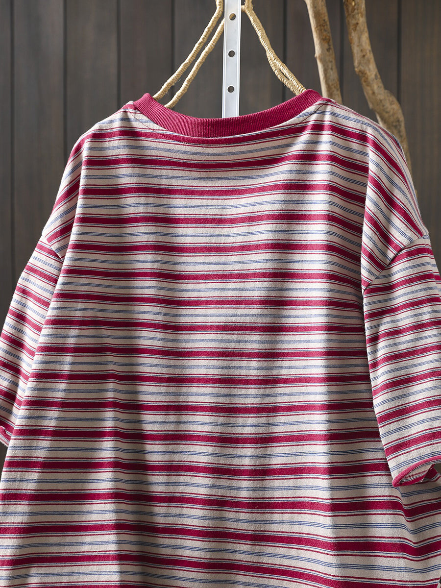 Damska letnia koszula w paski z okrągłym dekoltem, 100% bawełny