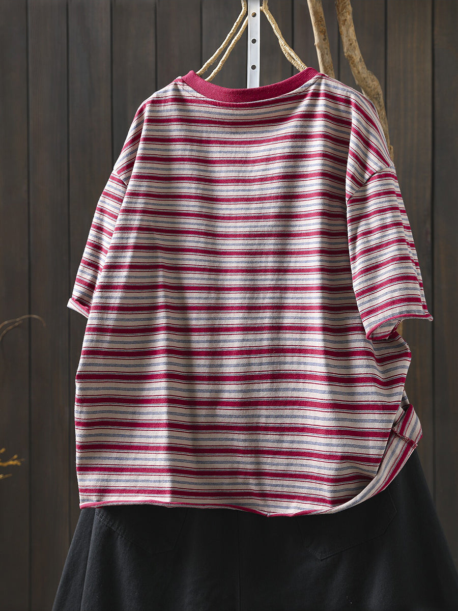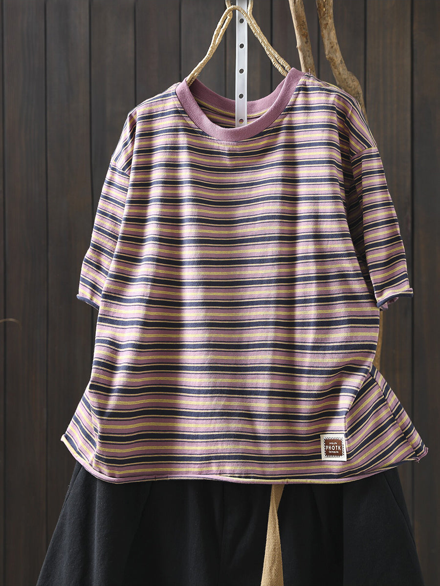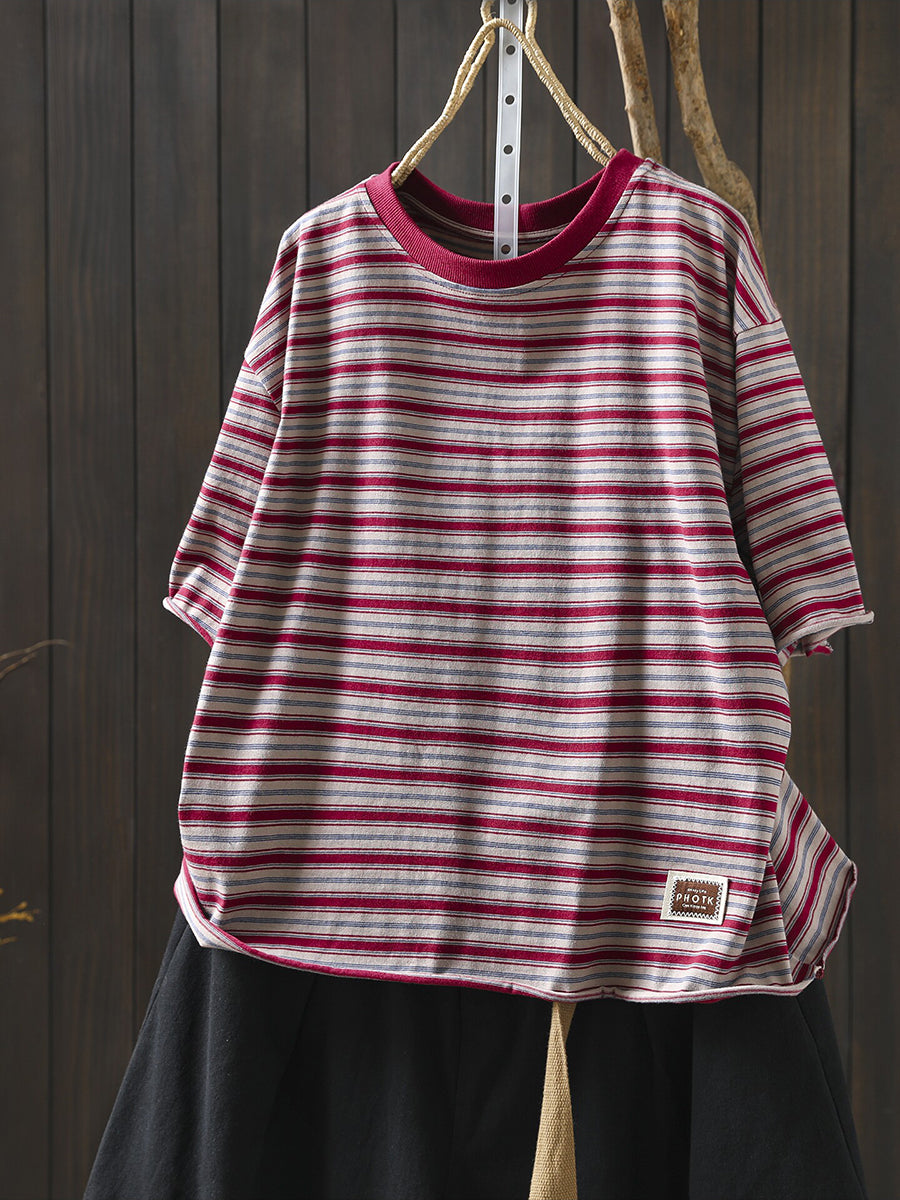Damska letnia koszula w paski z okrągłym dekoltem, 100% bawełny