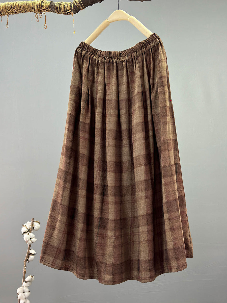 Spódnica damska letnia w kratę vintage, 100% bawełny