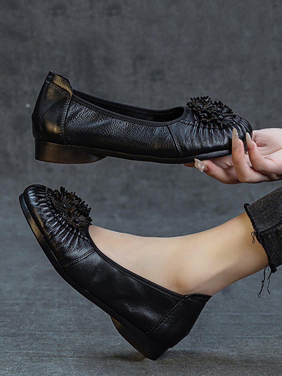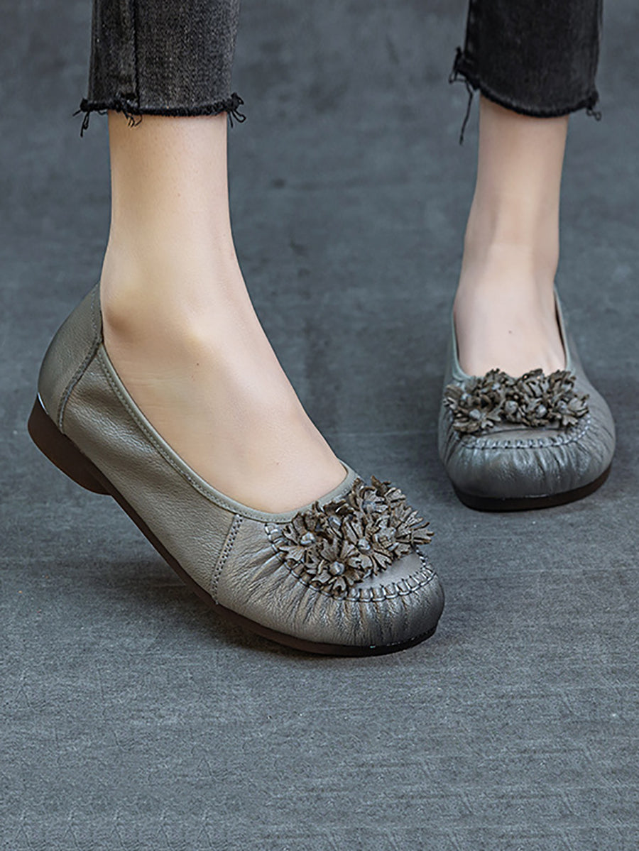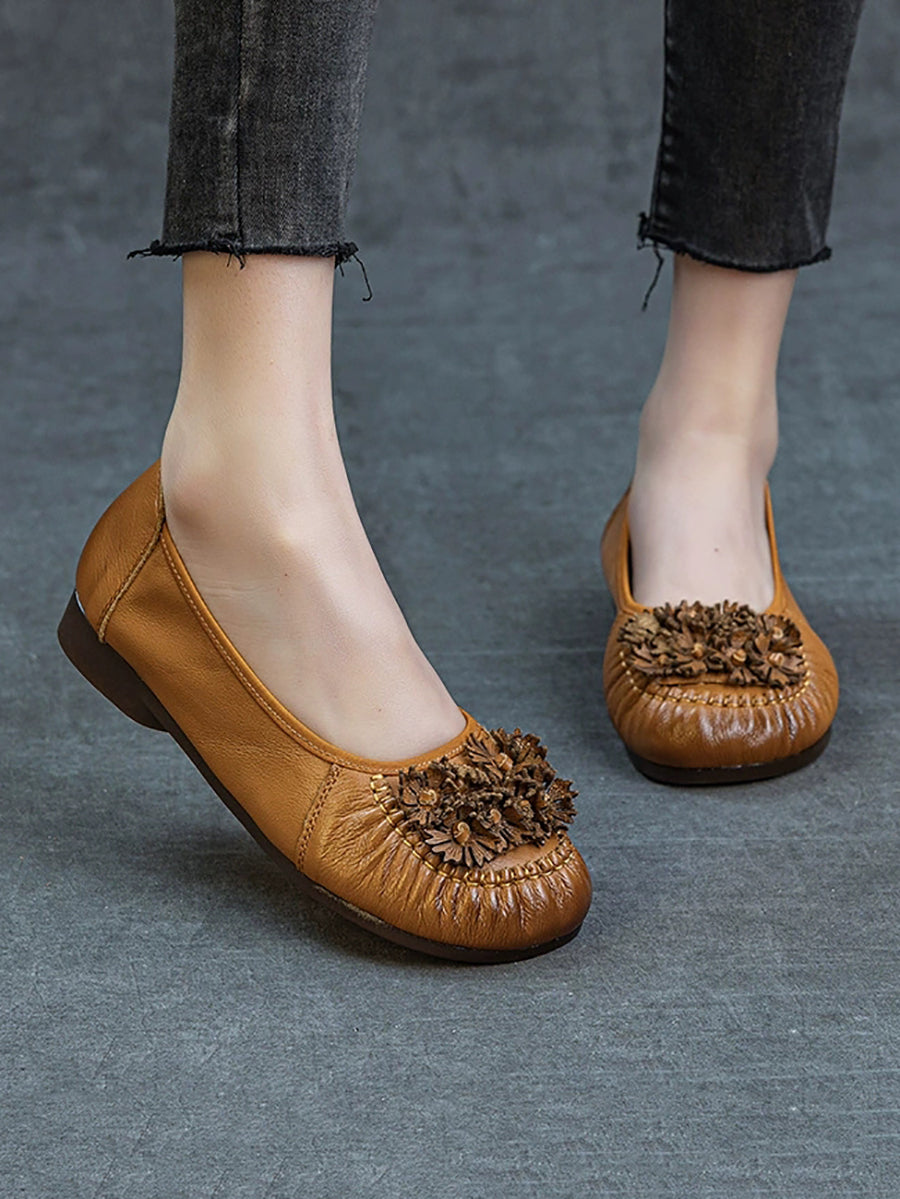 Damskie skórzane buty na niskim obcasie w kwiaty w stylu vintage