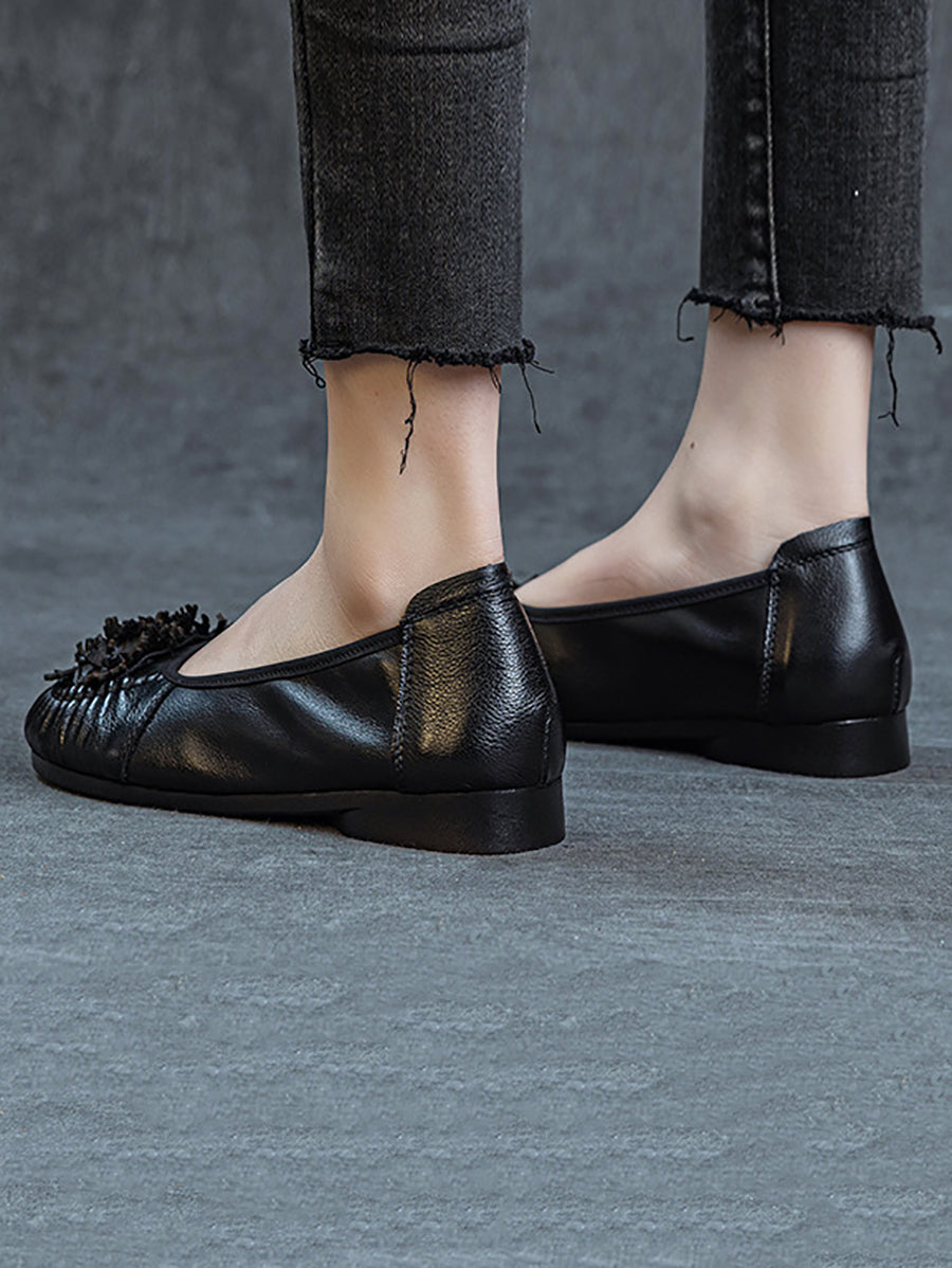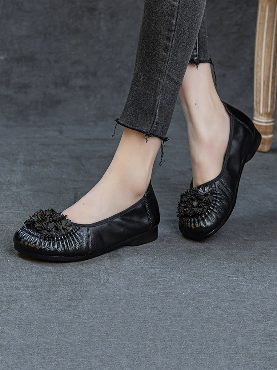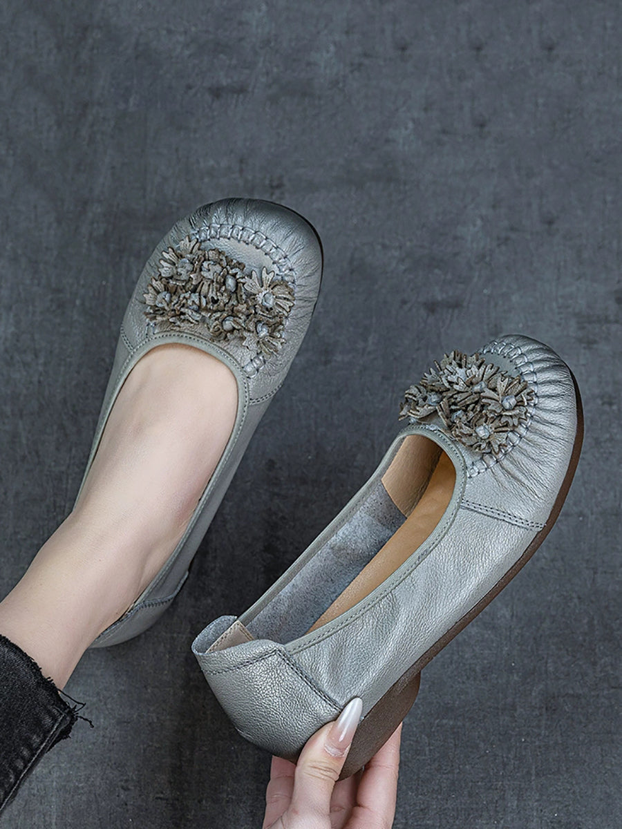 Damskie skórzane buty na niskim obcasie w kwiaty w stylu vintage