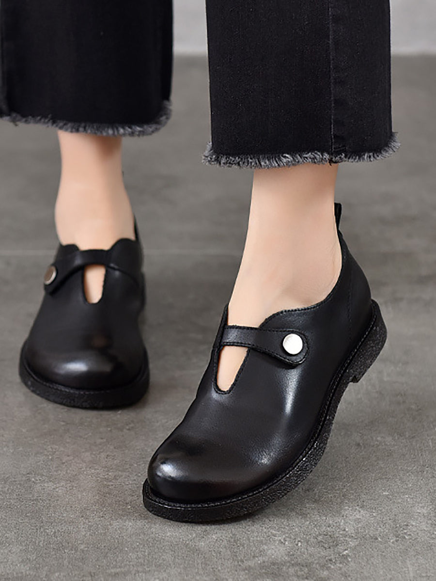 Damskie buty vintage z prawdziwej skóry na niskim obcasie