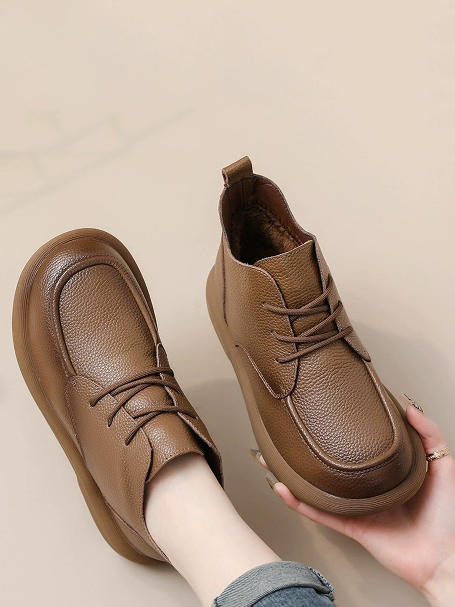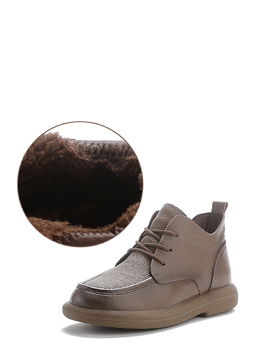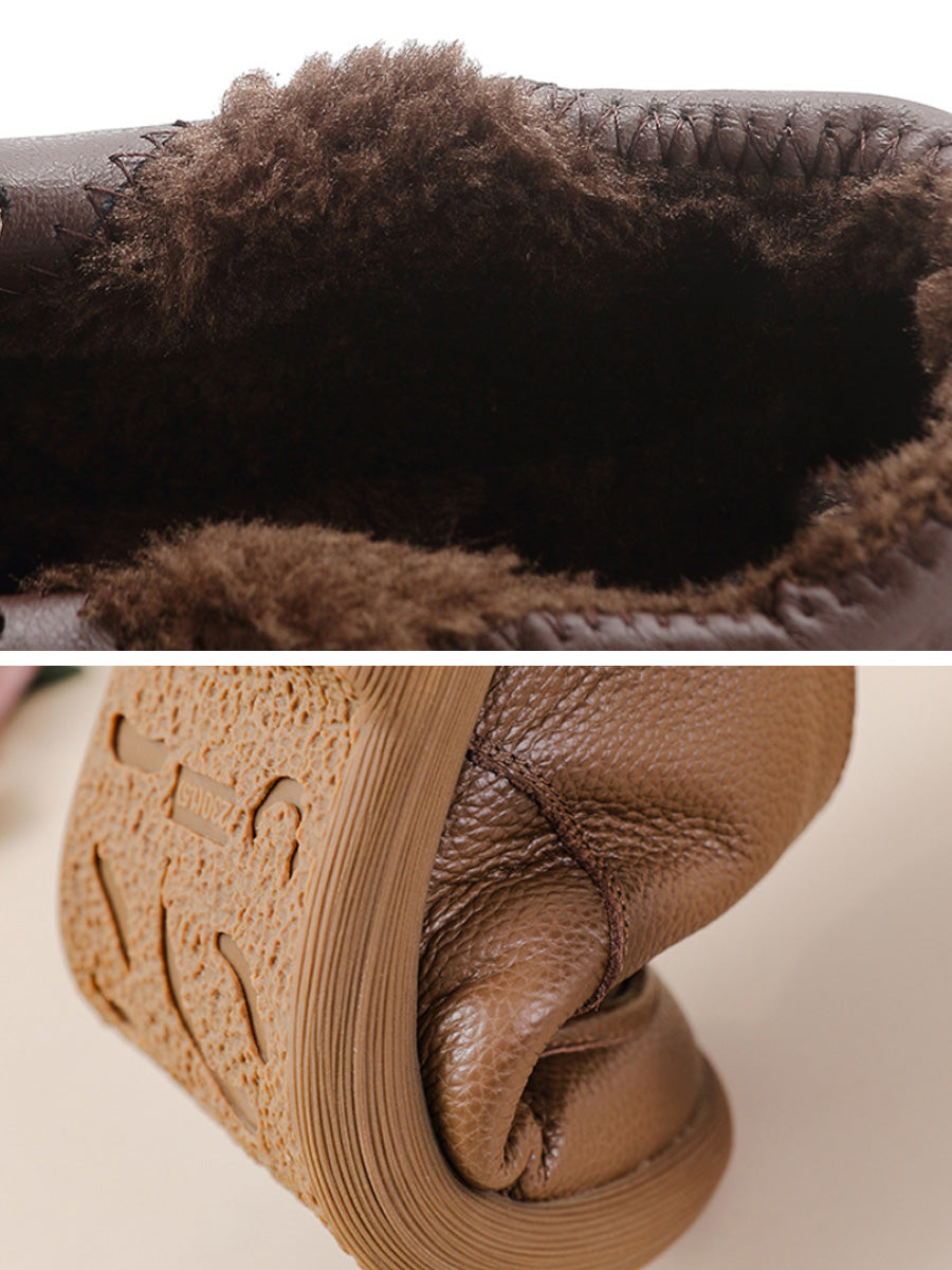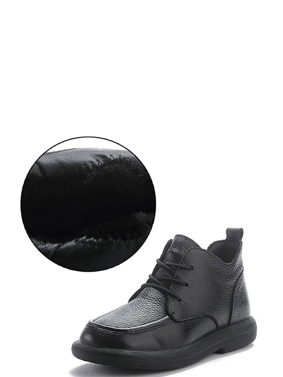 Damskie zimowe, płaskie botki ze skóry naturalnej