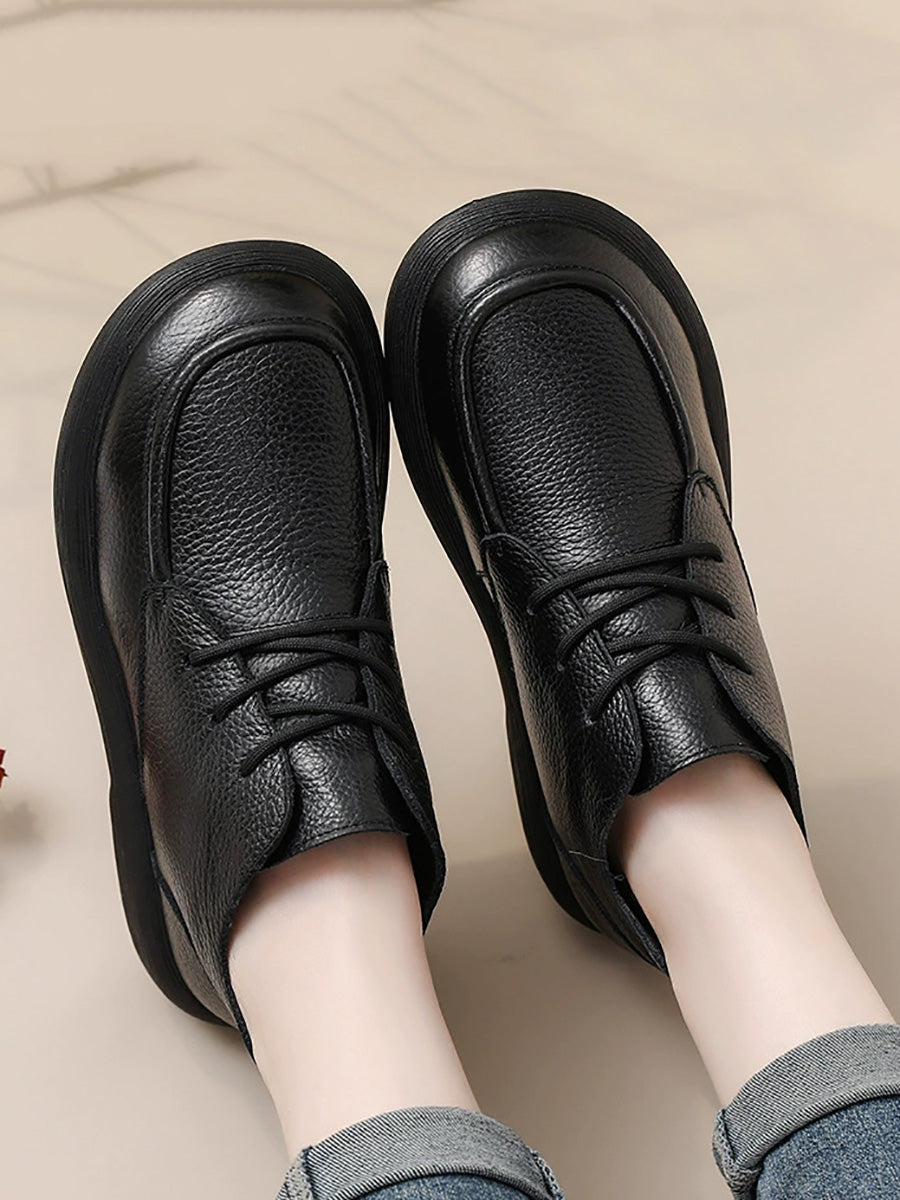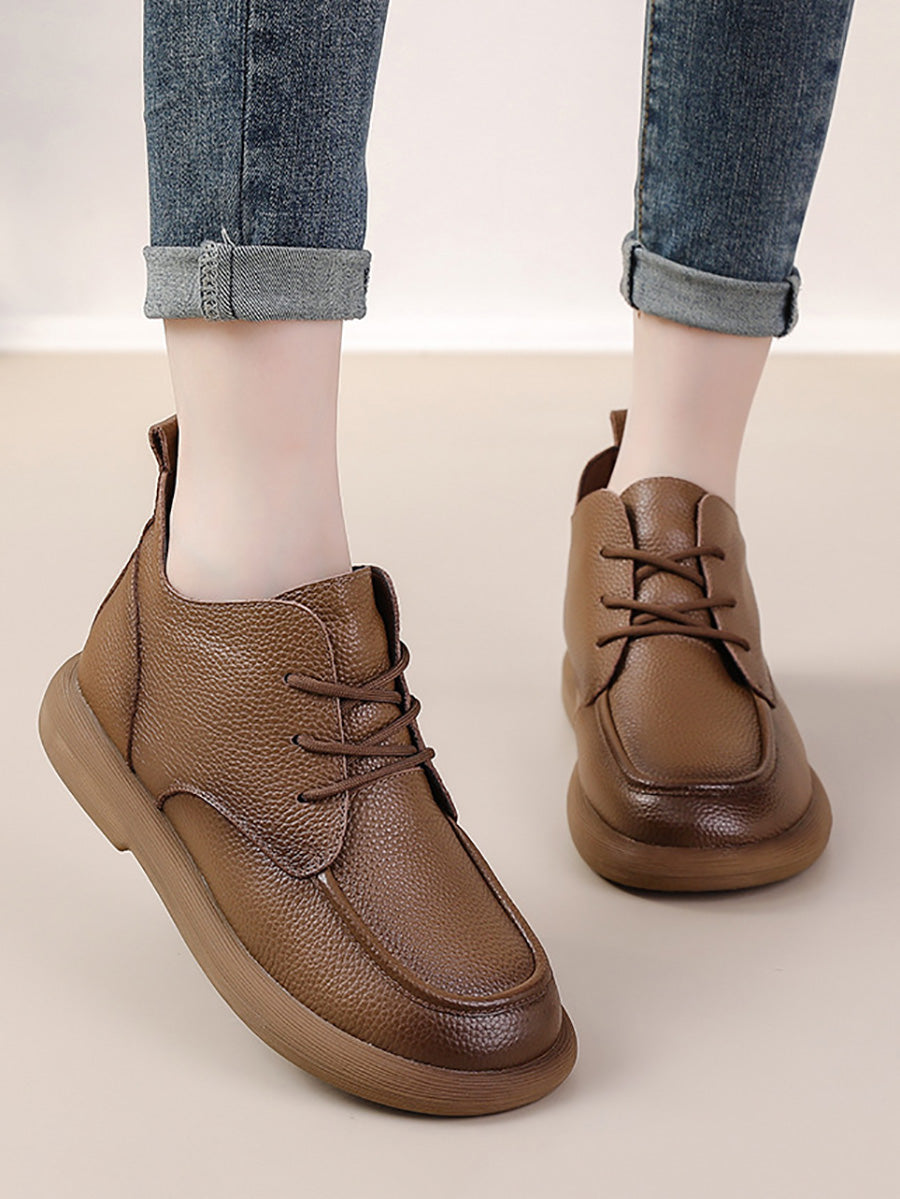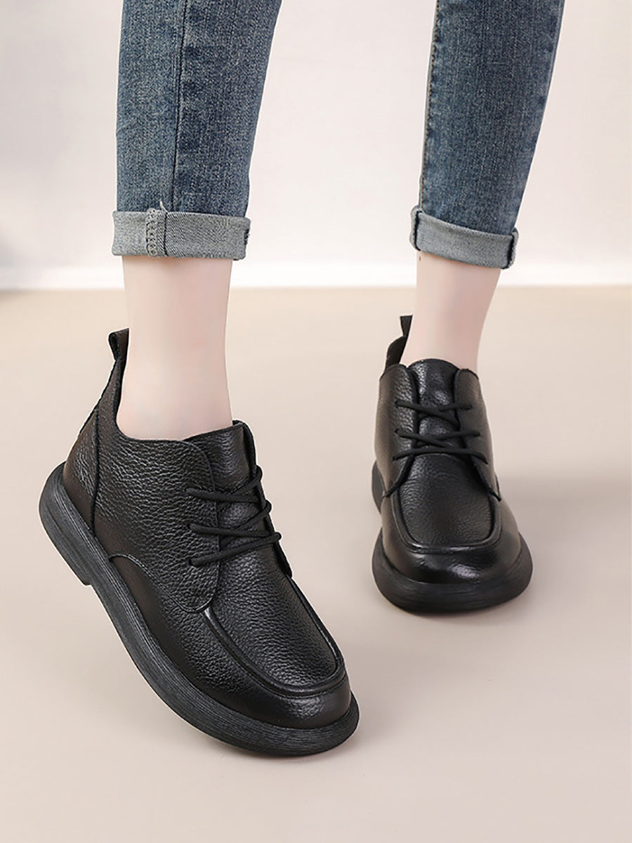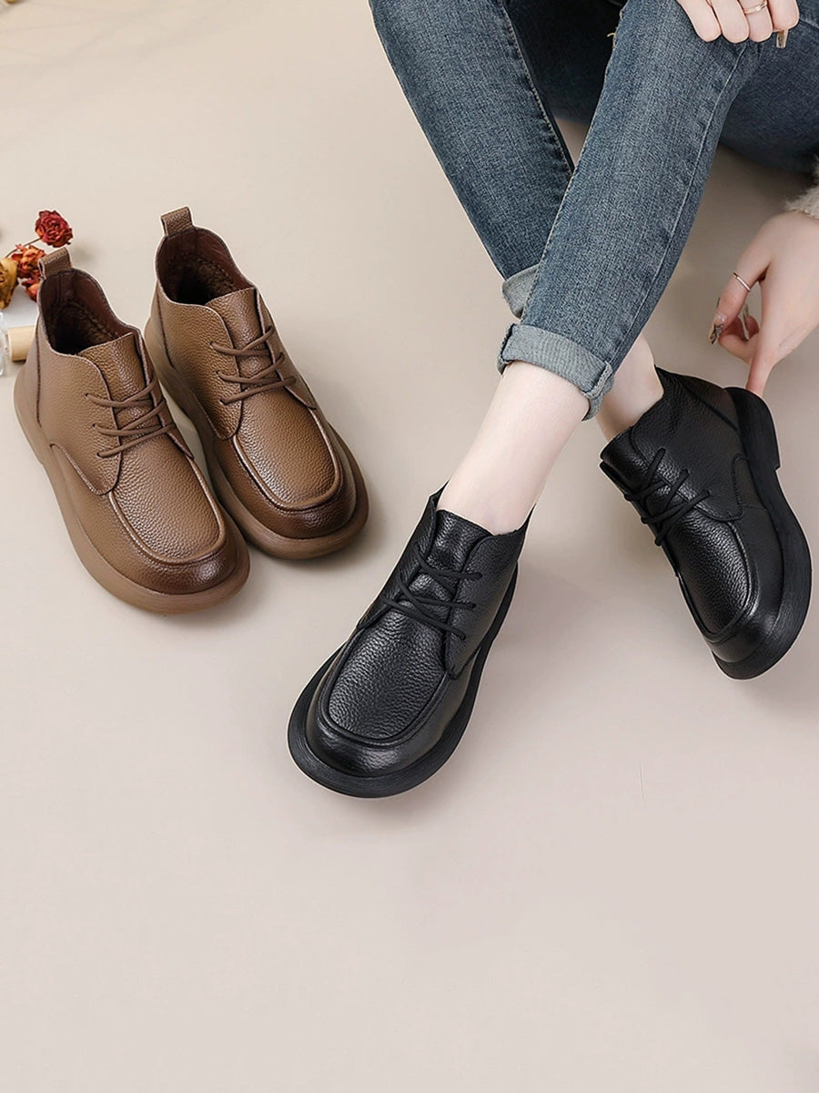 Damskie zimowe, płaskie botki ze skóry naturalnej