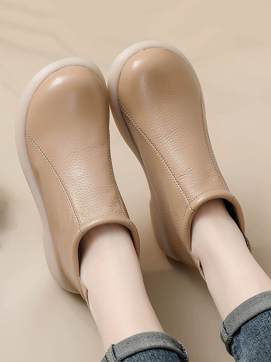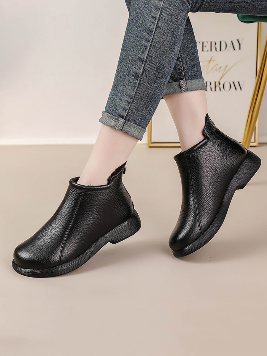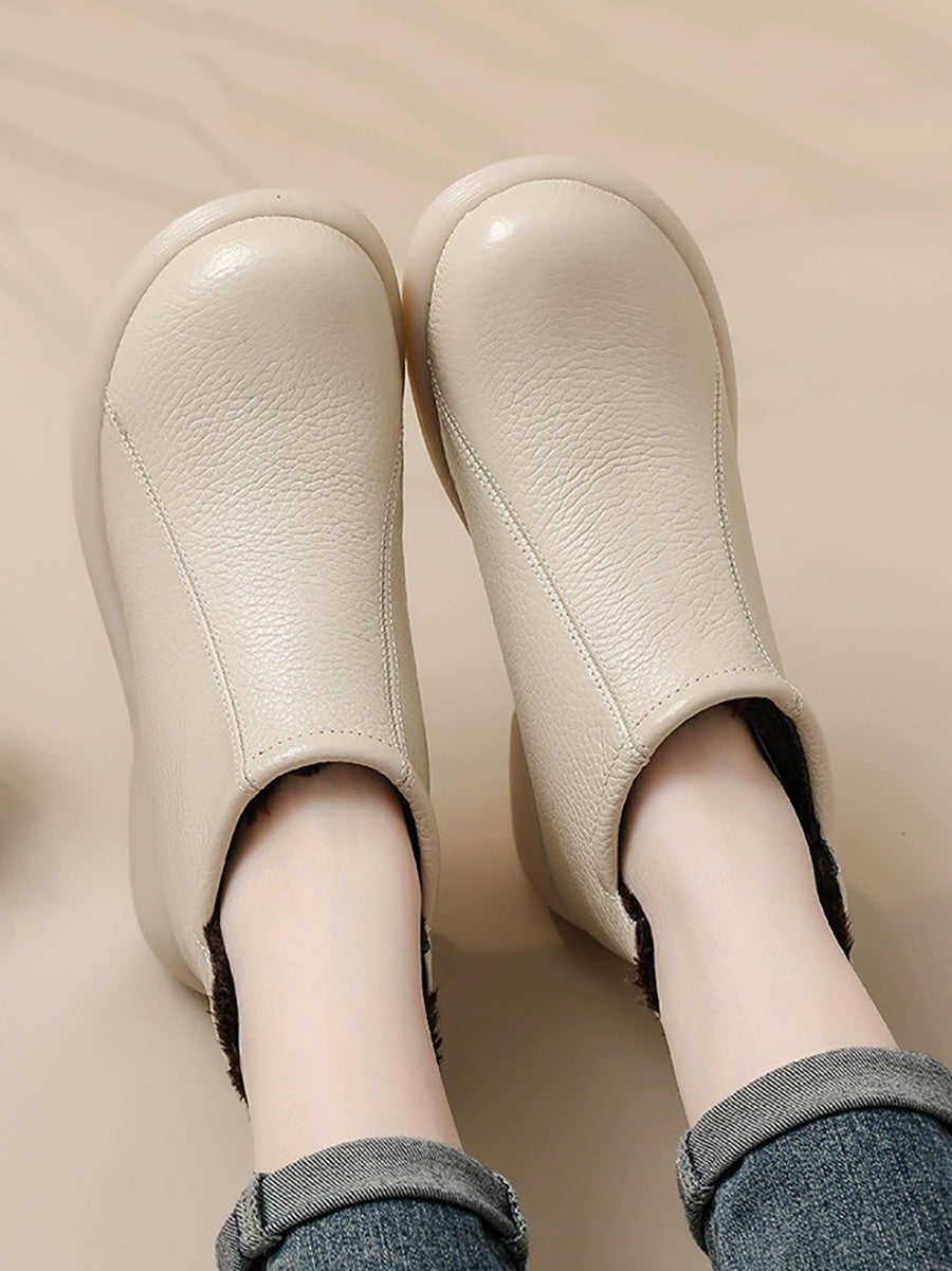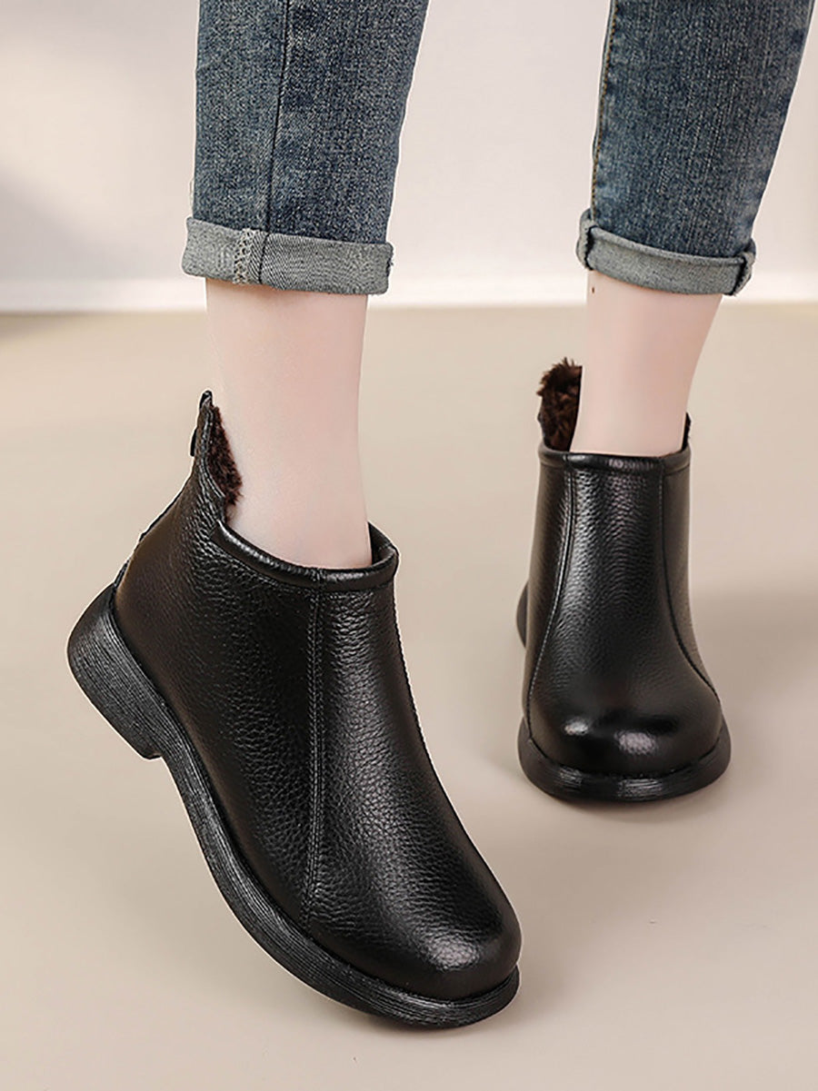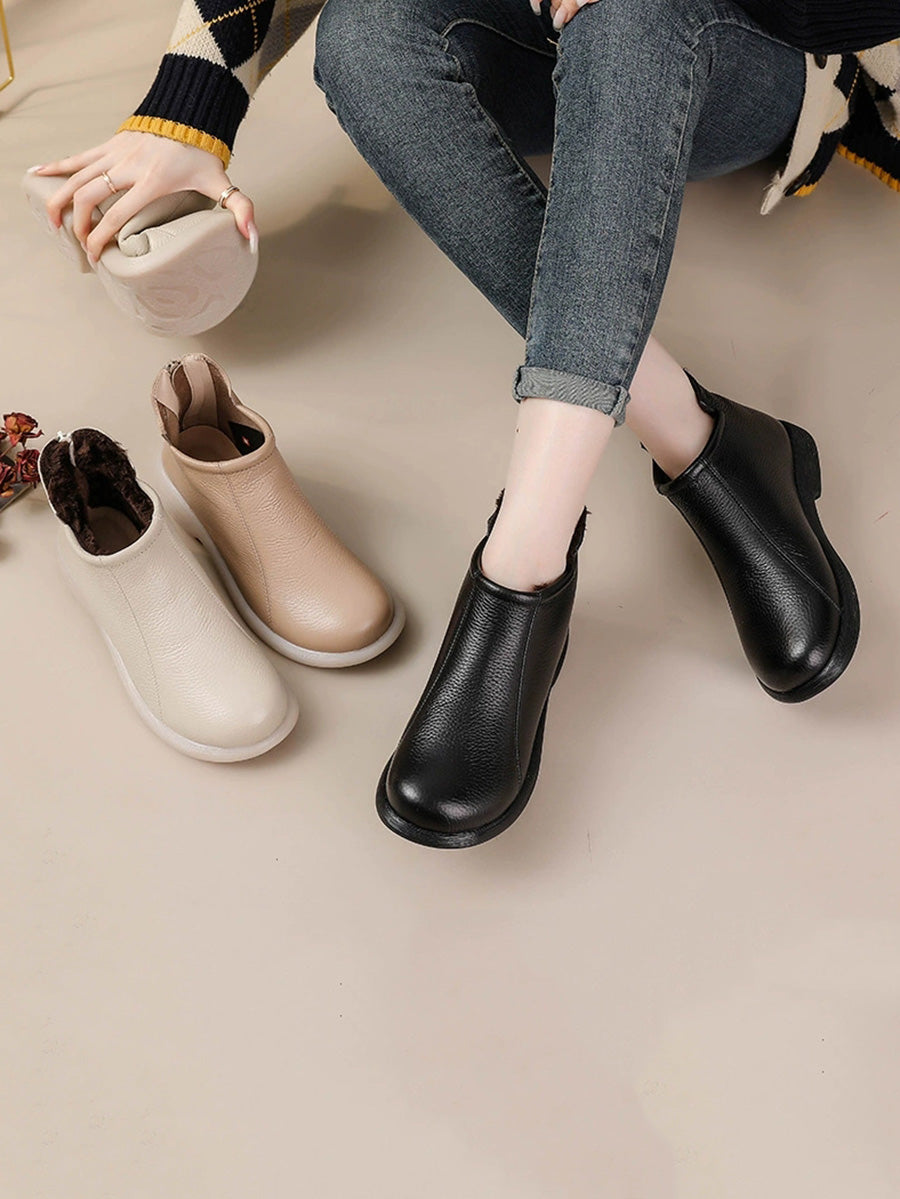 Damskie zimowe, stylowe, skórzane buty na niskim obcasie