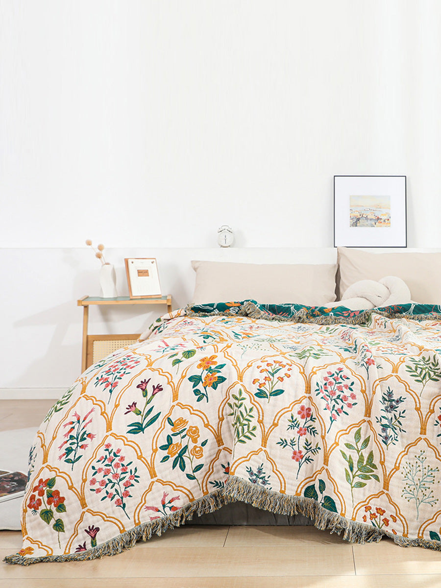 100%Cotton Queen Bedcover Flower Tassel Sofa Blanket