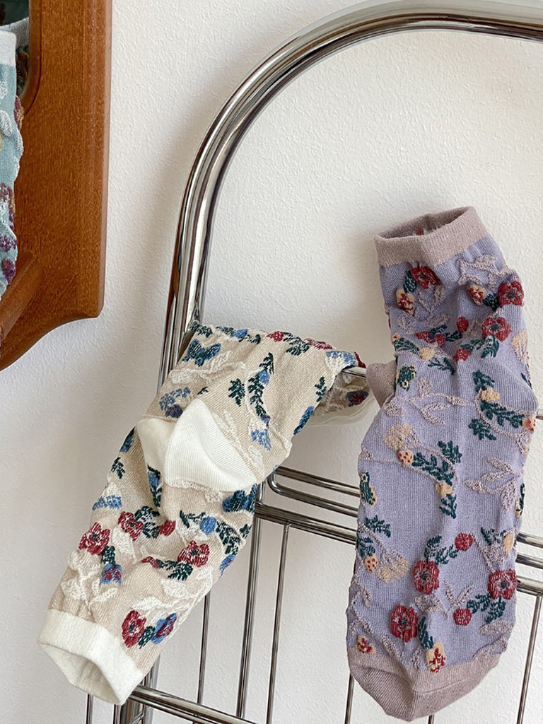 5 Pairs Women Artsy Floral Colorblock Jacquard Socks