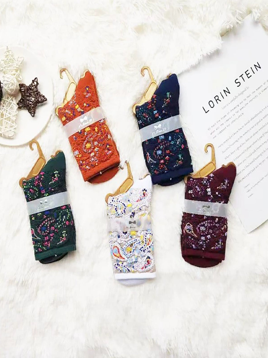 5 Pairs Women Artsy Floral Jacquard Socks