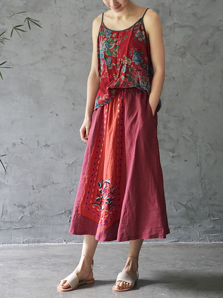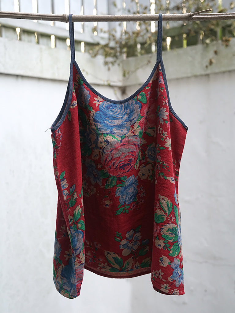 Plus Size Women Ethnic Flower Print Colorblock Summer Cotton Vest