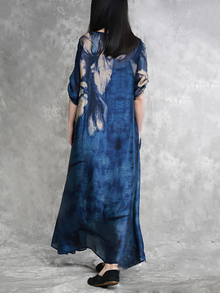 Plus Size Women Summer Flower Print Loose Maxi Dress