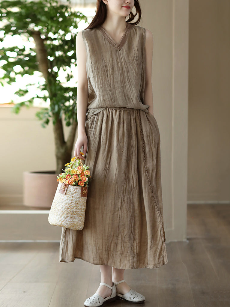 This combination of classic and comfort is designed to fit and flatter many figures. The lightweight fabric ensures clothing won't weigh you down, and is made of 100%Ramie for breathability and ease of movement.