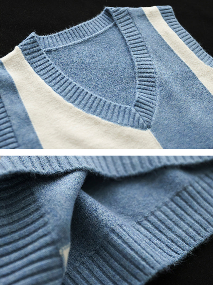 V-Neck Colorblock Plaid Sleeveless Vest Pullover Vest