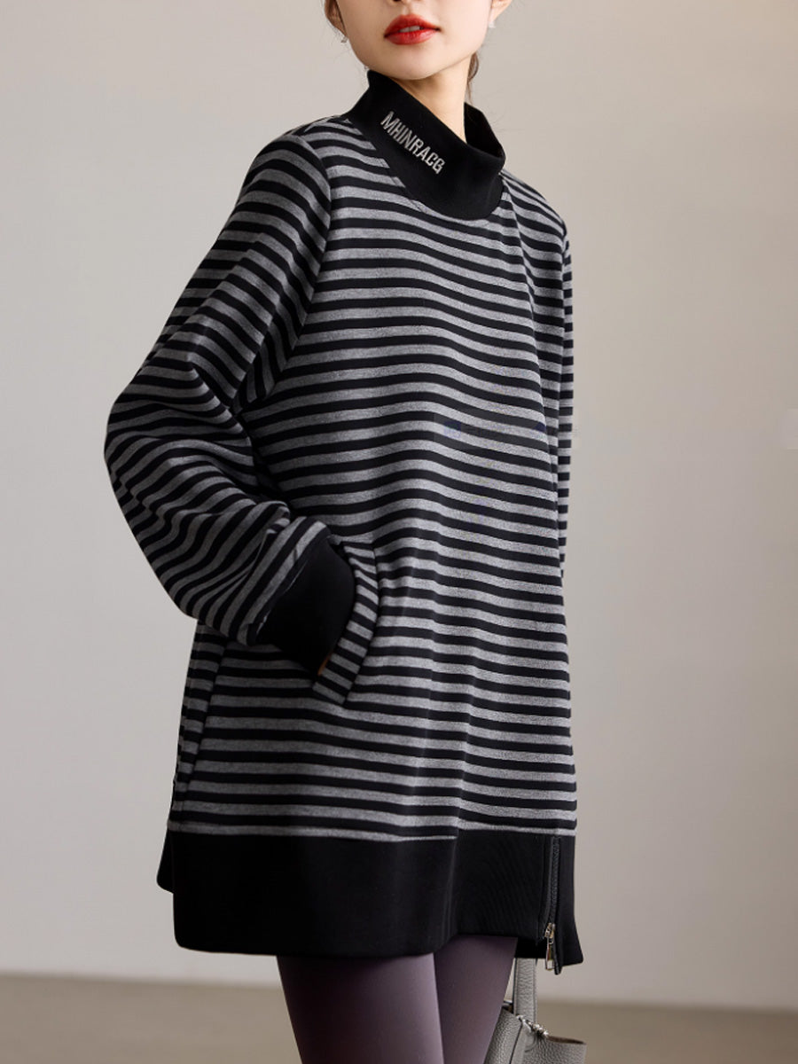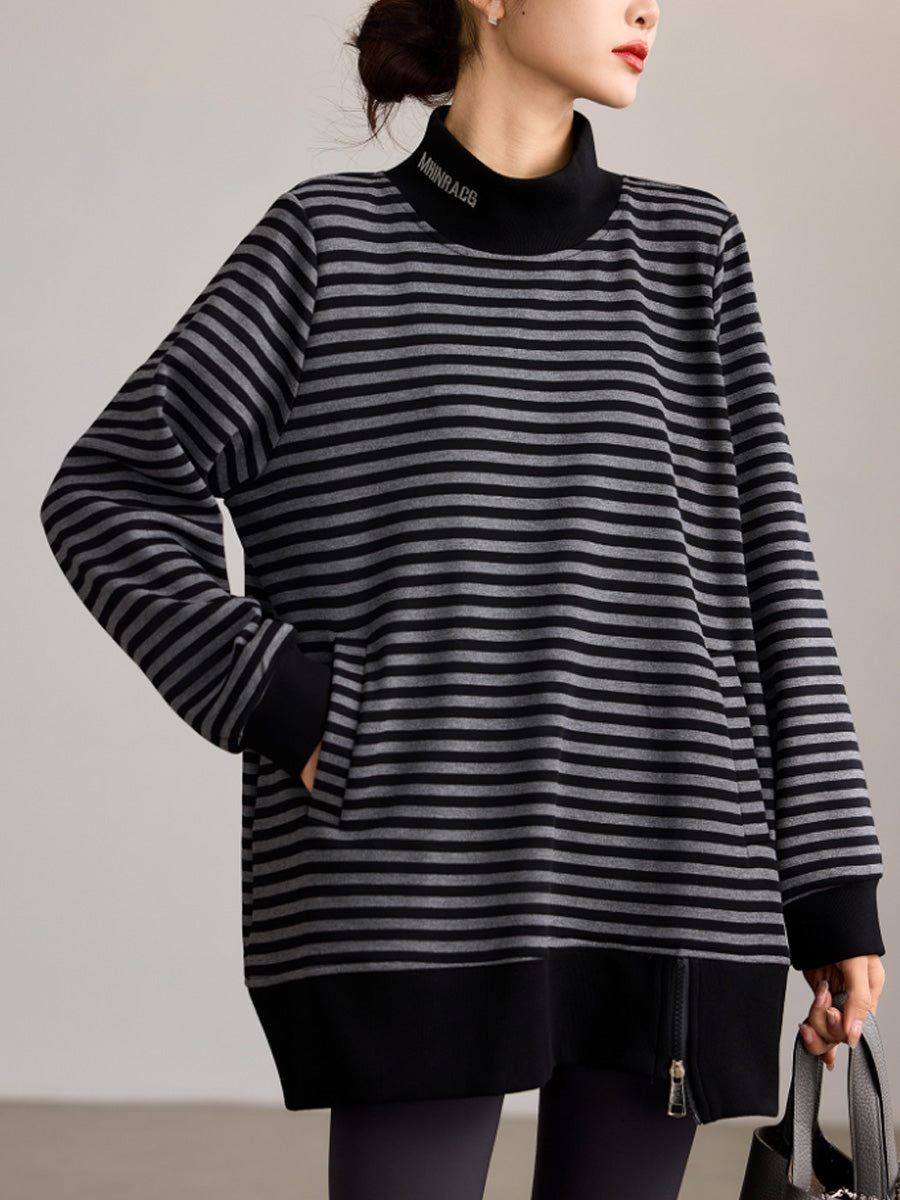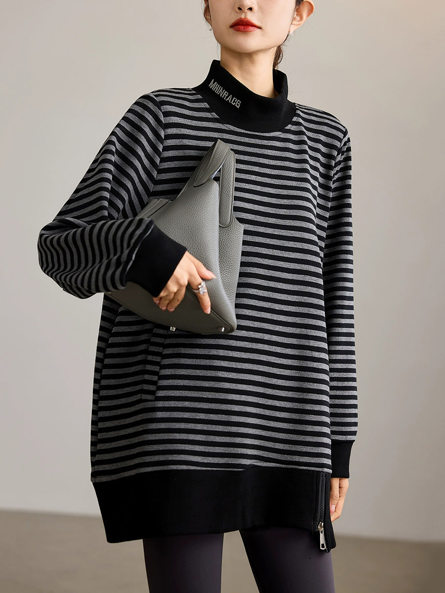 Women Artsy Autumn Stripe Turtleneck Blouse